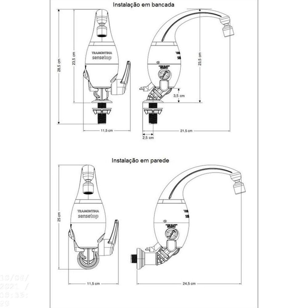 Torneira Eletrônica Tramontina Com Bica Articulada 6500 W 220 V TramontinaTorneira Eletrônica Tramontina com Bica Articulada 6500 W 220 V Tramontina -A Torneira Eletrônica Tramontina com Bica Articulada 6500 W 220 V, para cozinha ou banheiro é perfeita para evitar aquela sensação de desconforto ao abrir a torneira e sentir a água gelada. A torneira é versátil contando com uma bica móvel com rotação de 360° e podendo ser instalada na parede ou balcão. Com ela é possível regular a melhor temperatura dágua com o produto em uso. Também pensamos na redução do consumo de água, a torneira conta com arejador que impede respingos, evitando desperdício e economizando água. O registro cerâmico precisa apenas 1/4 de volta para abrir e fechar, proporcionando praticidade e durabilidade ao produto. Pensando em garantir ainda mais segurança a torneira é compatível com disjuntor residual (DR).Orientações.Características GeraisEAN137891435093131DUN1417891435093138NCM8516.79.90Peso Líquido0,5750 kg.Peso Bruto0,6625 kg.Metragem0,005670 m³.Dimensões Embalagem (Compr. X Larg. X Alt.)280x 150x 135 mm.Dimensões Produto (Compr. X Larg. X Alt.)230x 250x 110 mm.Diâmetro1,0 cm.Cor 1FFFFFF HexaCor 263B1BC HexaObservaçõesUtilizar a resistência eletrônica 58001172.A instalação e segurança: É importante que o produto seja instalado por profissional habilitado. Antes de instalar, desligue a energia elétrica.Características Gerais do Produto:Garantia: - 1 Ano