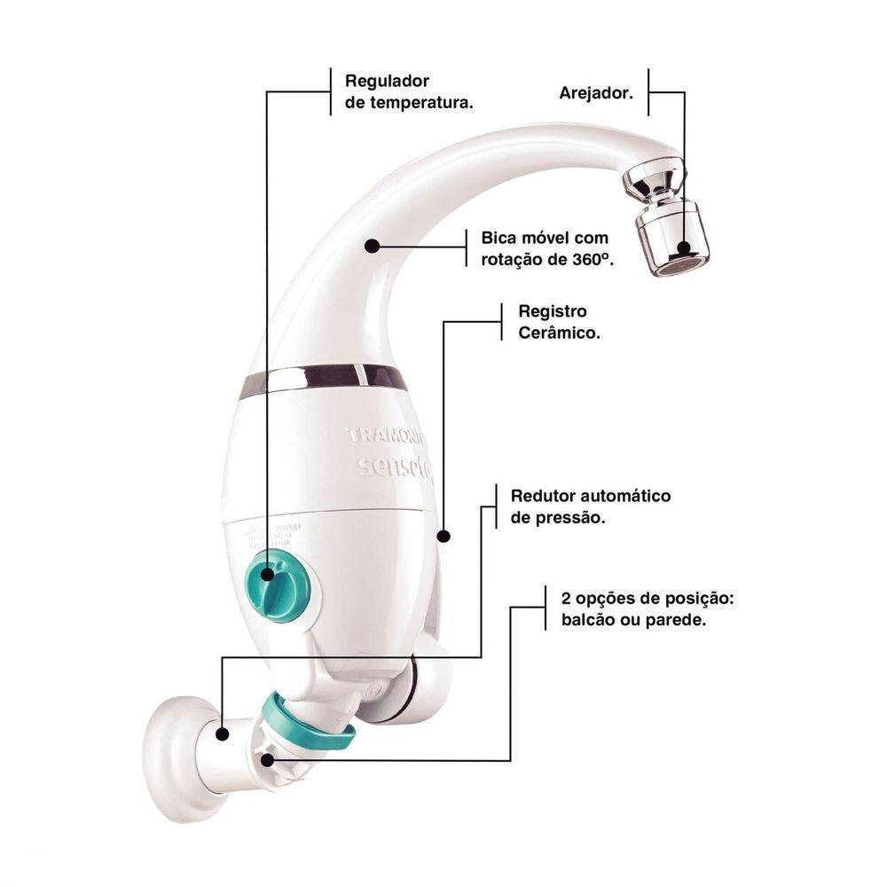Torneira Eletrônica Tramontina Com Bica Articulada 5500 W 127 V TramontinaTorneira Eletrônica Tramontina com Bica Articulada 5500 W 127 V Tramontina -A Torneira Eletrônica Tramontina com Bica Articulada 5500 W 127 V, para cozinha ou banheiro é perfeita para evitar aquela sensação de desconforto ao abrir a torneira e sentir a água gelada. A torneira é versátil contando com uma bica móvel com rotação de 360° e podendo ser instalada na parede ou balcão. Com ela é possível regular a melhor temperatura dágua com o produto em uso. Também pensamos na redução do consumo de água, a torneira conta com arejador que impede respingos, evitando desperdício e economizando água. O registro cerâmico precisa apenas 1/4 de volta para abrir e fechar, proporcionando praticidade e durabilidade ao produto. Pensando em garantir ainda mais segurança a torneira é compatível com disjuntor residual (DR).Orientações.Características GeraisEAN137891435093124DUN1417891435093121NCM8516.79.90Peso Líquido0,5750 kg.Peso Bruto0,6630 kg.Metragem0,005670 m³.Dimensões Embalagem (Compr. X Larg. X Alt.)280x 150x 135 mm.Dimensões Produto (Compr. X Larg. X Alt.)215x 115x 240 mm.Cor 1FFFFFF HexaCor 263B1BC HexaObservaçõesUtilizar a resistência eletrônica 58001171.A instalação e segurança: É importante que o produto seja instalado por profissional habilitado. Antes de instalar, desligue a energia elétrica.Características Gerais do Produto:Garantia: - 1 Ano