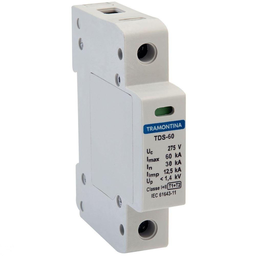 Dispositivo De Proteção Contra Surtos Tramontina Tds 1 P 60 Ka 275 V Classe I E Ii TramontinaDispositivo de Proteção Contra Surtos Tramontina TDS 1 P 60 kA 275 V Classe I e II Tramontina -Para garantir a segurança das suas instalações elétricas, o dispositivo de proteção contra surtos Tramontina TDS 1 P 60 kA 275 V Classe I e II é indispensável. Ideal para proteger a rede contra raios, ele minimiza as chances de queima dos equipamentos. Ele possui tensão de utilização de até 275 V e pode ser utilizado tanto em redes de 127 ou 220 de voltagem. O dispositivo tem tamanho semelhante a um mini disjuntor, tendo 18 milímetros de largura. Para saber a vida útil, basta verificar o indicador frontal: enquanto estiver verde ele estará em funcionamento e quando ficar vermelho deverá ser substituído. Escolha Tramontina e garanta qualidade e eficiência em suas construções! Orientações.Características GeraisEAN137891435960266DUN1417891435960263NCM8536.30.90Peso Líquido0,1125 kg.Peso Bruto0,1167 kg.Metragem0,000116 m³.Dimensões Embalagem (Compr. X Larg. X Alt.)96x 67x 18 mm.Dimensões Produto (Compr. X Larg. X Alt.)36x 74x 83 mm.ObservaçõesA instalação e segurança: É importante que o produto seja instalado por profissional habilitado. Antes de instalar, desligue a energia elétrica.Características Gerais do Produto:Garantia: - 1 Ano