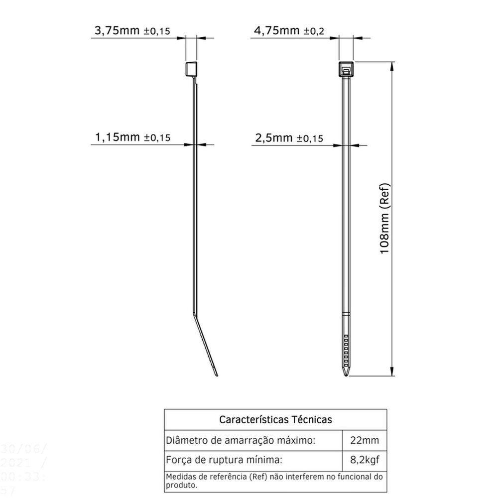 Abraçadeira De Nylon 108x2,5x1 Mm Tramontina Preta TramontinaAbraçadeira de Nylon 108x2,5x1 mm Tramontina Preta Tramontina -Com a Abraçadeira de Nylon 108x2,5x1 mm Tramontina Preta você terá maior praticidade para organizar os fios e cabos do seu ambiente. Ela é muito flexível e por ser produzida em nylon antichama, ainda garante alta resistência e durabilidade. A escolha perfeita para fazer parte dos seus itens de manutenção!Orientações.Características GeraisEAN137891435025996DUN1417891435025993NCM3926.90.90Peso Líquido0,0375 kg.Peso Bruto0,0413 kg.Metragem0,000003 m³.Dimensões Embalagem (Compr. X Larg. X Alt.)108x 3x 1 mm.Dimensões Produto (Compr. X Larg. X Alt.)108x 3x 1 mm.Cor 10000000 HexaObservações.Características Gerais do Produto:Garantia: - 1 Ano