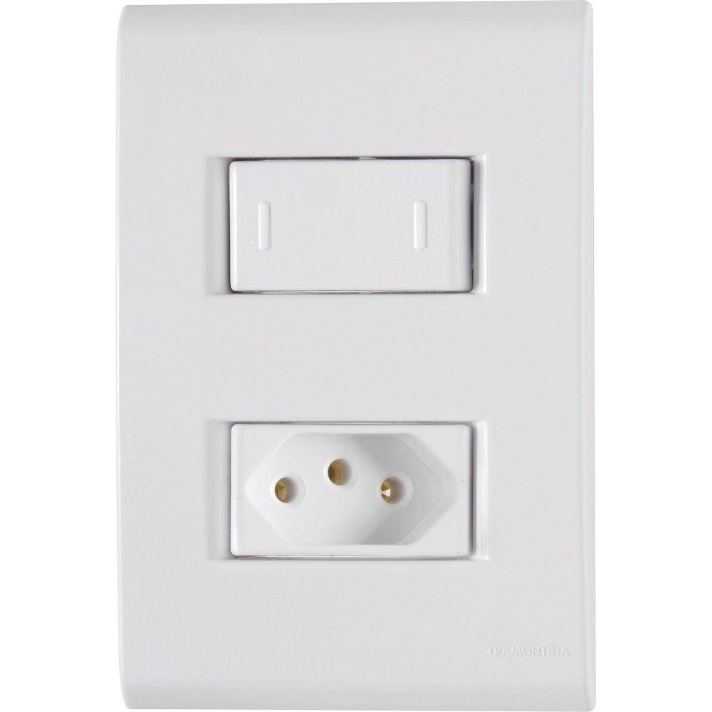 Conjunto 4x2 Com 1 Interruptor Paralelo 10 A 250 V E 1 Tomada 2p+t 20 A 250 V Tramontina Liz Branco TramontinaConjunto 4x2 com 1 Interruptor Paralelo 10 A 250 V e 1 Tomada 2P+T 20 A 250 V Tramontina Liz Branco Tramontina -O Conjunto 4x2 com 1 Interruptor Paralelo 10 A 250 V e 1 Tomada 2P+T 20 A 250 V Tramontina Liz Branco é a escolha perfeita para fazer parte dos projetos da sua casa. Produzido em termoplástico branco, ele vai garantir maior praticidade e proporcionar um acabamento perfeito entre a placa e a parede, sem deixar frestas e vincos na instalação. Além disso, possui furo oblongo que facilita a fixação e a regulagem da placa à parede e evita que ela fique desalinhada. Sua fixação não é aparente e pode ser utilizada tanto em paredes de alvenaria, quanto em paredes de madeira. A placa ainda pode ser trocada por outras cores da linha, garantindo maior versatilidade. A escolha perfeita para compor seus ambientes, com muito mais estilo!Orientações.ObservaçõesA instalação e segurança: É importante que o produto seja instalado por habilitado. Antes de instalar, desligue a energia elétrica.Características GeraisEAN137891435054873DUN1417891435054870NCM8536.69.10Peso Líquido0,0800 kg.Peso Bruto0,0860 kg.Metragem0,000600 m³.Dimensões Embalagem (Compr. X Larg. X Alt.)150x 100x 40 mm.Dimensões Produto (Compr. X Larg. X Alt.)120x 83x 42 mm.Cor 1FFFFFF HexaCaracterísticas Gerais do Produto:Garantia: - 1 Ano