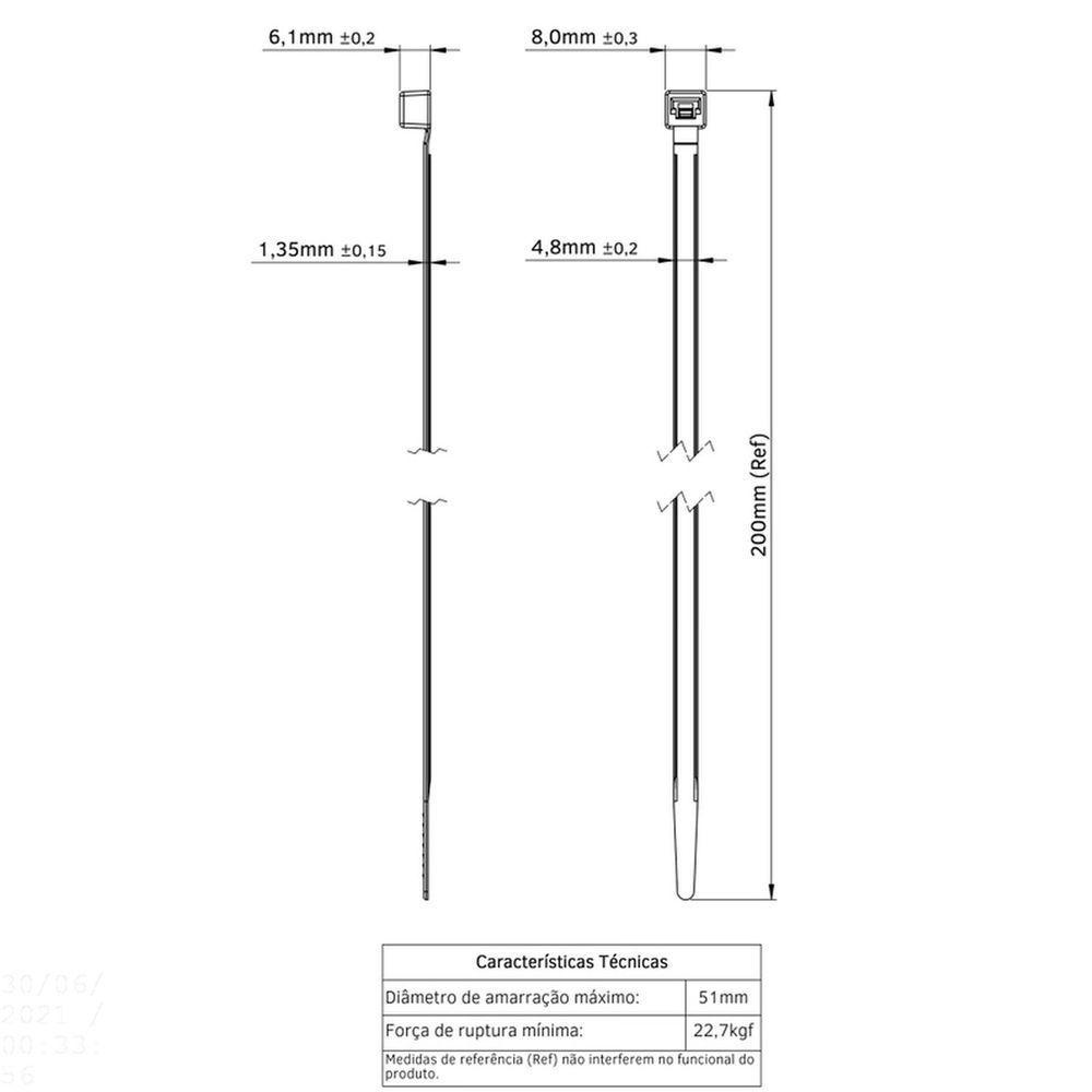 Abraçadeira De Nylon 200x4,8x1,5 Mm Tramontina Branca TramontinaAbraçadeira de Nylon 200x4,8x1,5 mm Tramontina Branca Tramontina -Com a Abraçadeira de Nylon 200x4,8x1,5 mm Tramontina Branca você terá maior praticidade para organizar os fios e cabos do seu ambiente. Ela é muito flexível e por ser produzida em nylon antichama, ainda garante alta resistência e durabilidade. A escolha perfeita para fazer parte dos seus itens de manutenção!Orientações.Características GeraisEAN137891435025958DUN1417891435025955NCM3926.90.90Peso Líquido0,1420 kg.Peso Bruto0,1510 kg.Metragem0,000001 m³.Dimensões Embalagem (Compr. X Larg. X Alt.)210x 5x 1 mm.Dimensões Produto (Compr. X Larg. X Alt.)200x 5x 2 mm.Cor 1FFFFFF HexaObservações.Características Gerais do Produto:Garantia: - 1 Ano