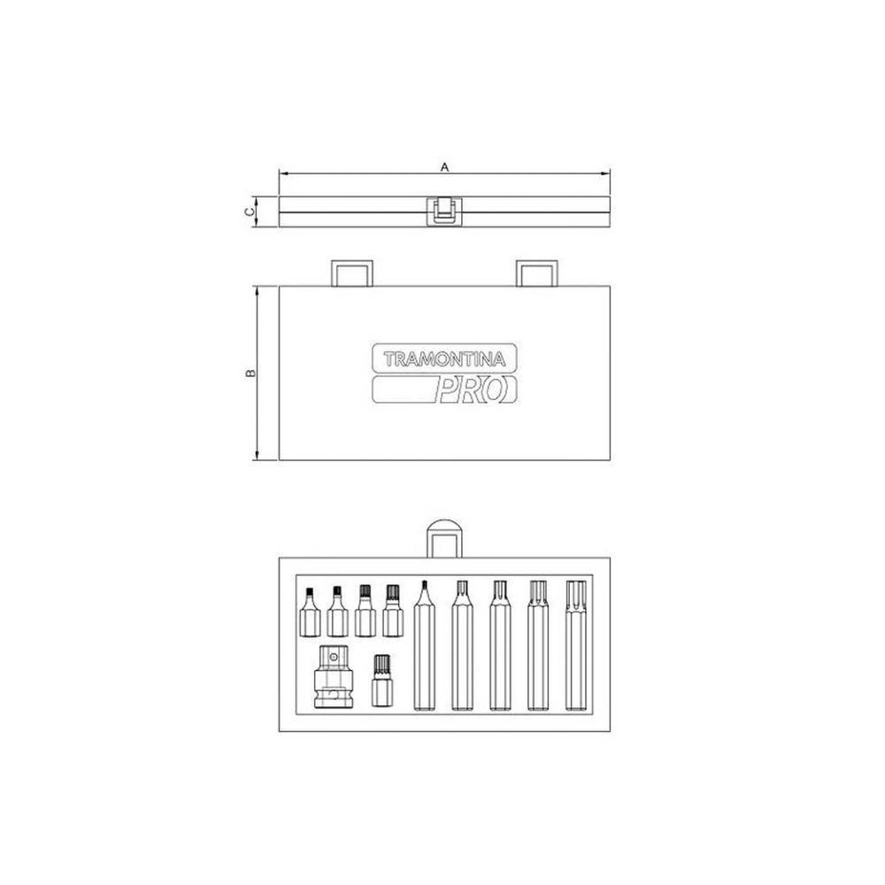 Jogo De Ponteiras Intercambiáveis Multidentada - 11 Peças Tramontina Pro TramontinaJogo de Ponteiras Intercambiáveis Multidentada - 11 Peças Tramontina PRO Tramontina -Utilizada para apertar ou afrouxar parafusos com encaixe Multidentado, o jogo de ponteiras intercambiáveis multidentada com 11 peças é indispensável para o mecânico. Possuem perfil longo e curto que permitem utilizar a ferramenta em locais de difícil acesso. Seu corpo é fabricado em aço ferramenta S2 temperado e o adaptador forjado em aço cromo vanádio. Para manter a organização na oficina e facilitar o , o jogo acompanha maleta metálica e adaptador 1/2. Acelere o seu trabalho com as ferramentas automotivas da Tramontina PRO.OrientaçõesCorpo das ponteiras em aço ferramenta S2 temperadoAdaptador forjado em aço cromo vanádioAcompanha:5 ponteiras ponta multidentada - longas: M5, M6, M8, M10 e M125 ponteiras ponta multidentada - curtas: M5, M6, M8, M10 e M12 Adaptador de 1/2ObservaçõesUse óculos, luvas e outros equipamentos de proteção individual (EPIs) de acordo com a tarefa a ser executada.Utilize chaves com ponta adequada para cada tipo de parafuso, para realizar a tarefa de forma mais rápida e segura.Respeite o torque estabelecido por norma para cada bitola.Não altere as dimensões da ponta para obter outro perfil. Armazene em limpo e seco.Características Líquido0,6800 Bruto0,7000 kg.Metragem0,000585 m³.Dimensões Embalagem (Compr. X Larg. X 100x 30 ões Produto (Compr. X Larg. X 101x 33 ão Extra A192,0 ão Extra B101,0 ão Extra C33,0 mm.Características Gerais do Produto:Garantia: - 1 Ano