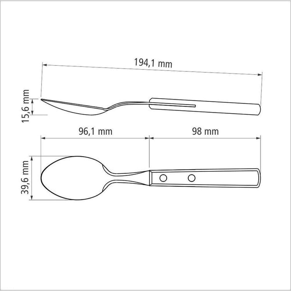 Colher De Mesa Tramontina Com Lâmina Em Aço Inox E Cabo Em Madeira Polywood Castanho TramontinaColher de Mesa Tramontina com Lâmina em Aço Inox e Cabo em Madeira Polywood Castanho Tramontina -A Colher de Mesa Tramontina com Lâmina em Aço Inox e Cabo em Madeira Polywood Castanho é perfeita para você utilizar enquanto saboreia uma deliciosa sopa de legumes. Nos dias frios, a peça será a companhia ideal para suas refeições. Além do charme e elegância que só os produtos Tramontina oferecem, você ainda terá maior durabilidade com o produto produzido com lâmina em aço inox e cabo de madeira tratada Polywood. Talheres clássicos deixam sua mesa mais bonita e permitem experiências memoráveis!OrientaçõesA lâmina de aço inox conta com maior espessura e uma estampagem do aço que garante maior resistência, evitando deformações.O cabo de madeira tratada Polywood é resistentes à impactos e altas temperaturas garantindo maior resistência e durabilidade.Rebites de alumínio.Pode ir à máquina de lavar louças facilitando seu dia a dia.Características GeraisEAN137891112108127DUN1417891112108124NCM8215.99.10Peso Líquido0,0385 kg.Peso Bruto0,0385 kg.Metragem0,000114 m³.Dimensões Embalagem (Compr. X Larg. X Alt.)195x 39x 15 mm.Cor 14E3629 HexaObservaçõesAntes da primeira utilização, lave bem a peças e seque-a.Produto cortante e perfurante: tenha cuidado ao manusear e mantenha fora do alcance das crianças.Para maior durabilidade do produto recomenda-se secar bem antes de guardar, mesmo após lavagem em máquina.Para descarte do produto e embalagens siga as orientações de reciclagem vigentes.Características Gerais do Produto:Garantia: - 1 Ano