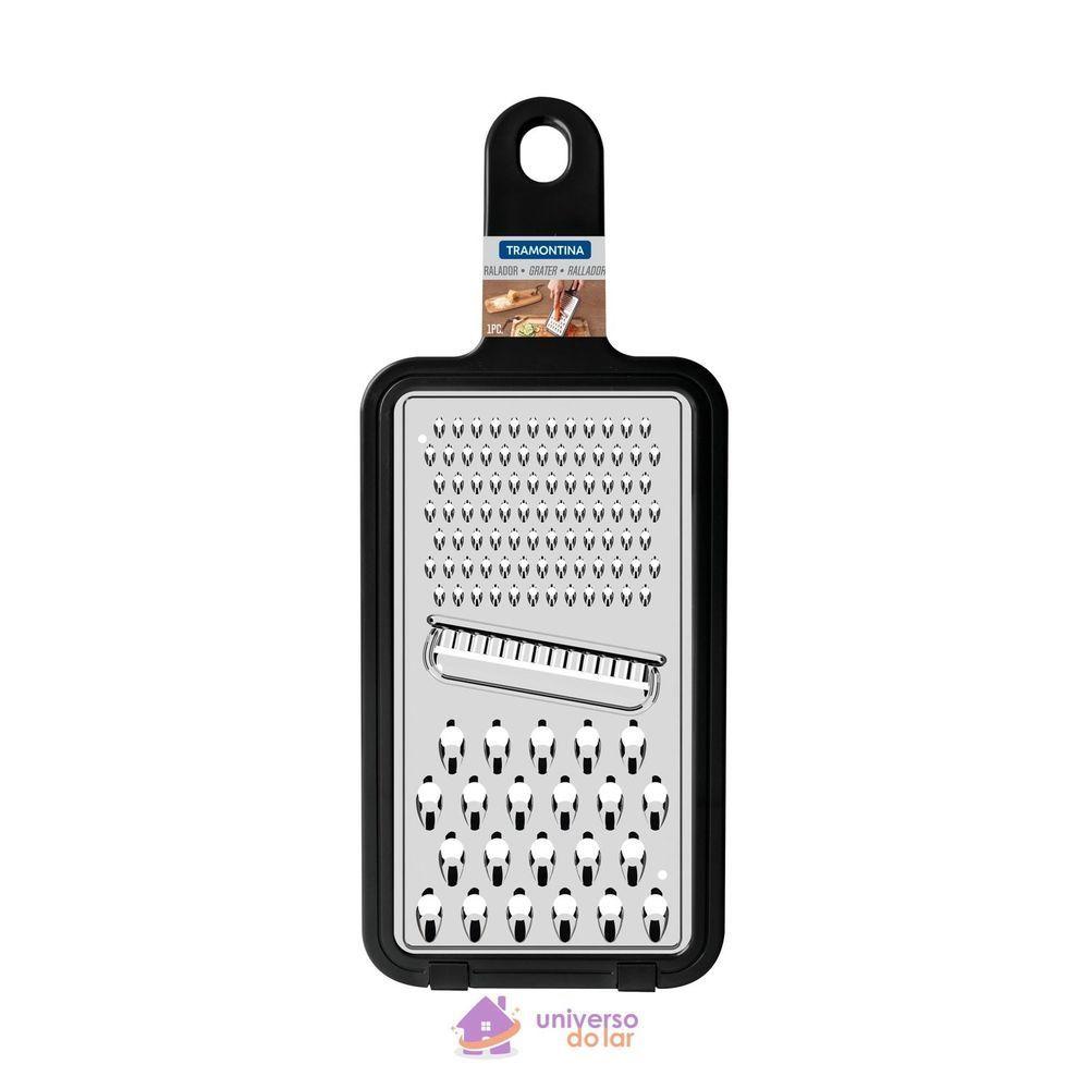 Ralador Universal Tramontina Utilitá Com Lâmina Em Aço Inox E Cabo Abs Suportes Em Borracha Preto TramontinaRalador Universal Tramontina Utilitá com Lâmina em Aço Inox e Cabo ABS Suportes em Borracha Preto Tramontina -Ralador Universal Tramontina Utilitá com Lâmina em Aço Inox e Cabo em ABS com Suportes em Borracha PretoPara o preparo de deliciosas receitas de forma fácil, prática e confortável, o Ralador Universal Tramontina Utilitá com Lâmina em Aço Inox e Cabo em ABS com Suportes em Borracha Preto é a escolha perfeita! Ideal para uso no dia a dia, ele é produzido com lâmina em aço inox que garante durabilidade e cabo em ABS com suportes em borracha que deixam seu manuseio muito mais confortável e seguro. A escolha perfeita para o dia a dia na cozinha!Lâmina de aço inox com três diferentes opções de corte. Lâmina com dentes em escala maior, para melhor eficácia no manuseio. Cabo com design diferenciado e detalhes ranhurados, proporcionando maior firmeza e segurança no manuseio. Cabo com furo passante para pendurar o utensílio. Pode ir à máquina de lavar louças.Cuidados com o produtoPara maior durabilidade dos produtos, recomenda-se secar bem antes de guardar, mesmo após lavagem em máquina. Para descarte dos produtos e embalagens siga as orientações de reciclagem vigentes.Garantia90 dias para vícios ou defeitos de fabricação.Características Gerais do Produto: - Cor: Preto Garantia: - 3 Meses