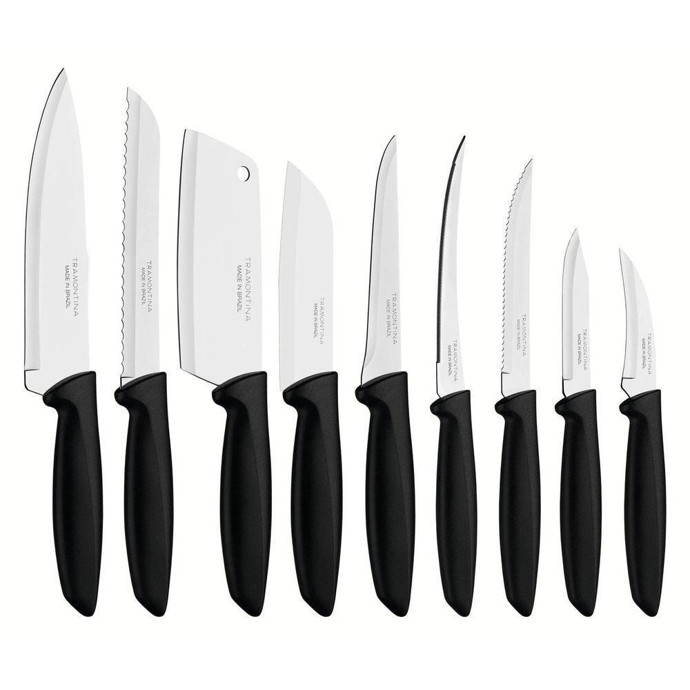Jogo De Facas Plenus Com Lâminas Em Aço Inox E Cabos De Polipropileno Preto 9 Peças