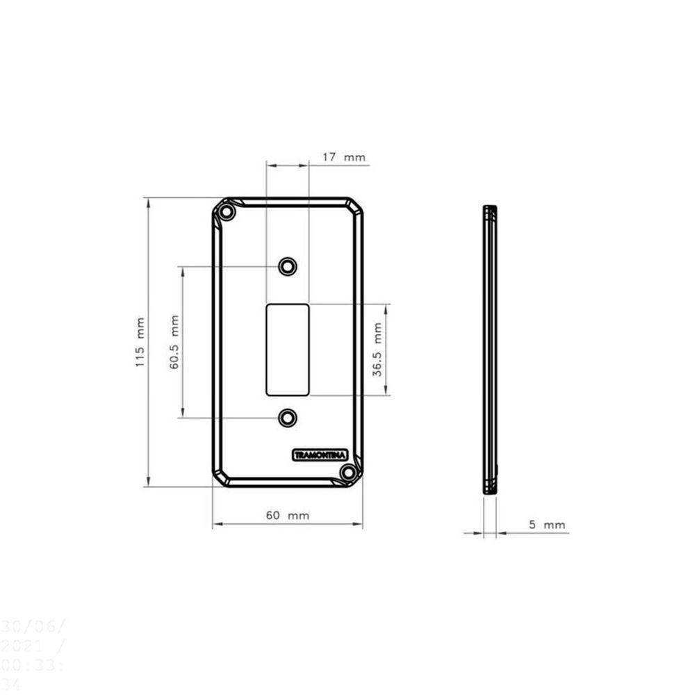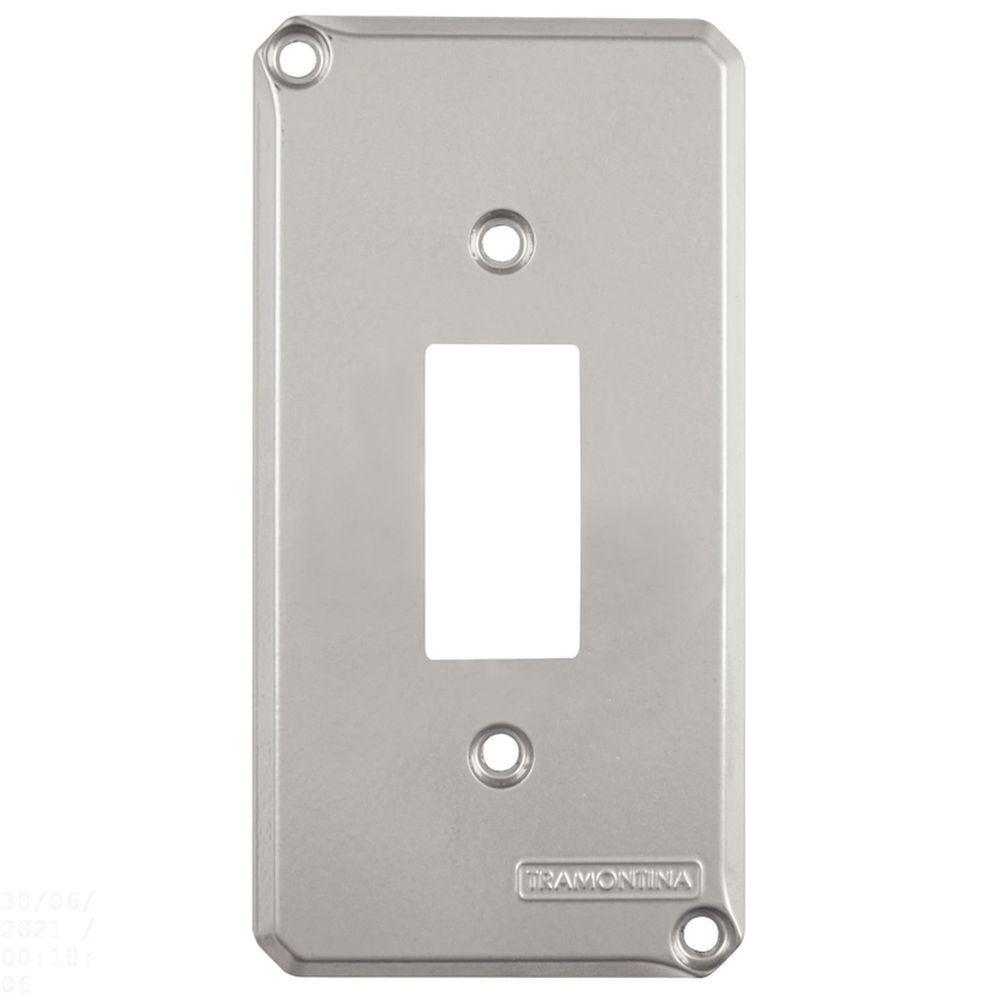 Tampa Para Condulete 1" Com 1 Posto TramontinaTampa para condulete 1 com 1 posto Tramontina -Produzido em alumínio, acabamento com pintura, possui elevada resistência mecânica e a corrosão, sendo imprescindível para instalações eletricas aparentes - residenciais, comerciais e industriais - proporcionando uma solução, quando não se tem a intenção de quebrar a parede para embutir a fiação. Acompanham parafusos.OrientaçõesPintura eletrostática a pó na cor cinza Munsell N 6.5Características GeraisEAN137891435050172DUN1417891435050179NCM7609.00.00Peso Líquido0,0350 kg.Peso Bruto0,0370 kg.Metragem0,000049 m³.Dimensões Embalagem (Compr. X Larg. X Alt.)140x 70x 5 mm.Dimensões Produto (Compr. X Larg. X Alt.)115x 60x 3 mm.Cor 1C0C0C0 HexaObservaçõesA instalação e segurança: É importante que o produto seja instalado por profissional habilitado. Antes de instalar, desligue a energia elétrica.Características Gerais do Produto:Garantia: - 1 Ano