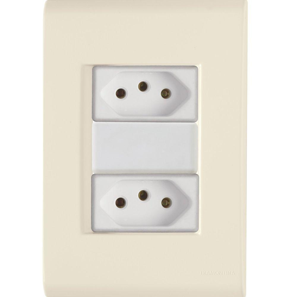 Cj Duas Tomadas Dupla 20a Liz Bege Tramontina Completo Pronto Tramontina