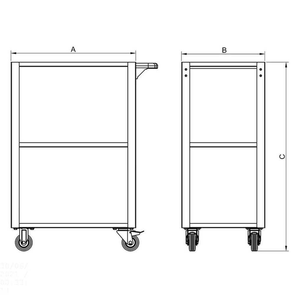 Carro Aberto Desmontável Para Ferramentas Tramontina Pro TramontinaCarro Aberto Desmontável para Ferramentas Tramontina PRO Tramontina -Os organizadores modulares da Tramontina PRO permitem mobiliar oficinas mecânicas e concessionárias de forma personalizada. São diversas opções de móveis totalmente fabricados no Brasil e divididos em armários, painéis, bancadas, estantes e carros de ferramentas, que vão deixar o ambiente de trabalho mais bonito, organizado, seguro e ágil, pois cada ferramenta terá o seu lugar. O Carro Aberto Desmontável para Ferramentas Tramontina PRO possui estrutura com paredes reforçadas. Além disso, o produto é desmontável o que torna a sua embalagem compacta, otimizando o transporte. Porque não basta ter a ferramenta certa, é preciso ter ela sempre à mão.OrientaçõesEstrutura com paredes reforçadas.Três bandejas.Rodas dianteiras fixas em plástico com 80 mm de diâmetro.Rodas traseiras giratórias em plástico com 80 mm de diâmetro.Capacidade estática: 150 kg; Capacidade dinâmica: 80-100 kgEspessura das chapas: 0,9 mmPuxador injetado em plástico na cor pretaPintura eletrostática na cor preta.Produto desmontado, embalagem compacta.Características GeraisEAN137891114174700DUN1417891114174707NCM9403.20.00Peso Líquido12,0000 kg.Peso Bruto12,5000 kg.Metragem0,031001 m³.Dimensões Embalagem (Compr. X Larg. X Alt.)830x 415x 90 mm.Dimensões Produto (Compr. X Larg. X Alt.)600x 402x 900 mm.Cor 1000000 HexaDimensão Extra A600,0 mm.Dimensão Extra B402,0 mm.Dimensão Extra C900,0 mm.ObservaçõesSempre utilizar óculos de segurança para proteger os olhos.Utilizar luvas para proteger as mãos.Não colocar peças muito altas sobre carrinhos, pois elas caem facilmente durante sua movimentação.Manter o chão do local de trabalho limpo, evitando que as rodas dos carrinhos batam ou passem sobre obstáculo, causando a queda de algo que está sobre o carrinho, ou do próprio.Não sobrecarregar os carrinhos com peso excessivoCaracterísticas Gerais do Produto:Garantia:- 1 Ano