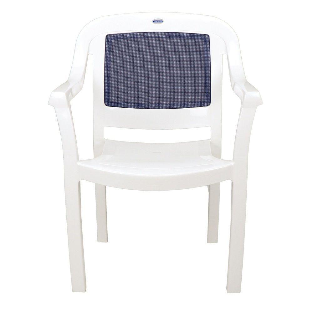Cadeira Tramontina Miami Polipropileno Branco Tela Azul Escuro Tramontina