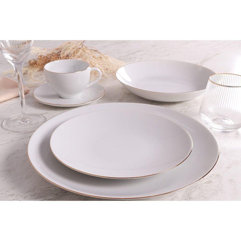 Aparelho De Jantar Tramontina Anna Em Porcelana Decorada 20 Peças Jogo De Pratos TramontinaAparelho de Jantar Tramontina Anna em Porcelana Decorada 20 Peças Jogo de Pratos Tramontina -Aparelho de Jantar Tramontina Anna em Porcelana Decorada 20 Peças Jogo de PratosO aparelho de jantar Tramontina em porcelana 20 peças da coleção Anna traz elegância e requinte para servir até 4 pessoas. Com bordas delicadamente decoradas com filete de ouro, cada peça reflete exclusividade e beleza. Seja para reuniões intimistas ou momentos especiais, este conjunto é perfeito para quem busca elevar a experiência à mesa.Fabricado em Porcelana.Uso: Impróprio para micro-ondas e lava-louças.Coleção: Anna.Porosidade próxima de zero, evitando a proliferação de fungos e bactérias.Volume da xícara: 250 ml.Composto por: 20 peças.Serviço: 4 pessoas.Cuidados com o produto Ao usar o produto pela primeira vez, lavar bem a peça com esponja macia e sabão neutro. Lavar as peças utilizando esponja macia e sabão neutro. Não levar as peças ao forno. Não submeter as peças a chama direta.Garantia90 dias de garantia legal para vícios ou defeitos de fabricação. - -Características Gerais do Produto:Garantia: - 3 Meses