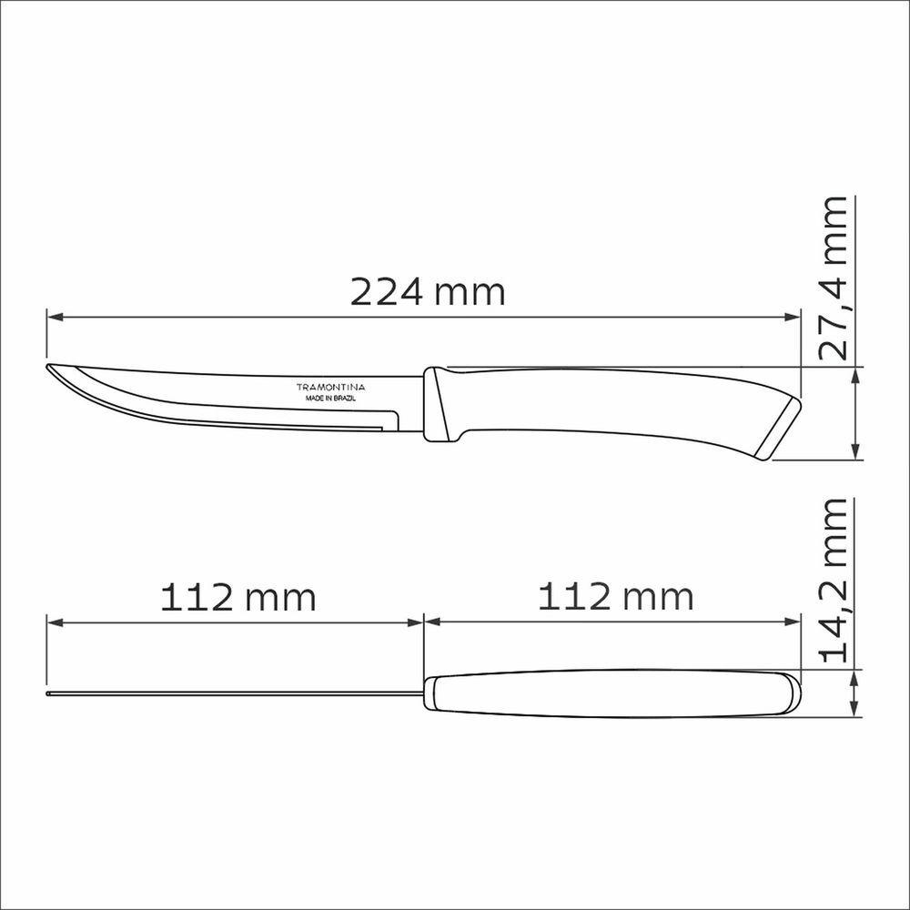 Faca Para Churrasco Tramontina Felice Aço Inox Fio Liso Cabo De Polipropileno Azul 5 Polegadas TramontinaFaca para churrasco Tramontina Felice Aço Inox Fio Liso Cabo de Polipropileno Azul 5 polegadas Tramontina -Faca para churrasco Tramontina Felice Aço Inox Fio Liso Cabo de Polipropileno Azul 5 polegadasPara cortes de carnes perfeitos em seu churrasco, a faca para churrasco Tramontina Felice com lâmina em aço inox fio liso e cabo de polipropileno azul de 5 polegadas é uma escolha certa. Com uma lâmina confortável e um cabo ergonômico, ela proporciona precisão ao fatiar carnes. Ideal para diferentes tipos de corte, e sua praticidade é garantida pela facilidade de lavagem na máquina de lavar louça. Perfeito para quem ama um bom churrasco.Lâminas de aço inox com maior durabilidade do fio devido ao tratamento térmico. Cabos de polipropileno com maior resistência e durabilidade. Podem ir à máquina de lavar louças facilitando seu dia a dia.Cuidados com o produto Antes da primeira utilização, lave bem as peças e seque-as. Produtos cortantes e perfurantes: tenha cuidado ao manusear e mantenha fora do alcance das crianças. Para maior durabilidade dos produtos recomenda-se secar bem antes de guardar, mesmo após lavagem em máquina. Recomenda-se o uso de tábuas de polipropileno ou madeira da Tramontina para maior durabilidade do fio das facas. Não é indicado o uso das facas para o corte de alimentos congelados. Mantenha sempre sua faca afiada utilizando os afiadores da Tramontina. Para descarte dos produtos e embalagem siga as orientações de reciclagem vigentes.Garantia90 dias para vícios ou defeitos de fabricação. - -Características Gerais do Produto:Garantia: - 3 Meses