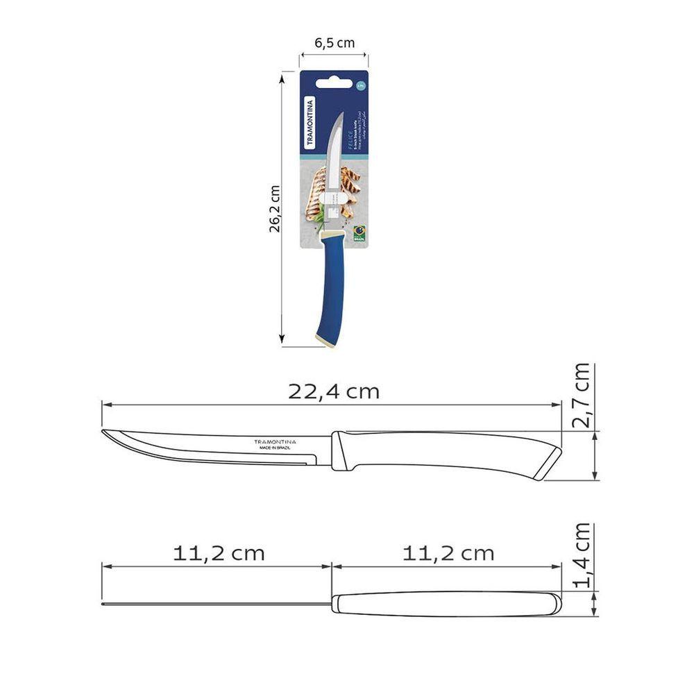 Faca Para Churrasco Tramontina Felice Aço Inox Fio Liso Cabo De Polipropileno Azul 5 Polegadas Tramontina
