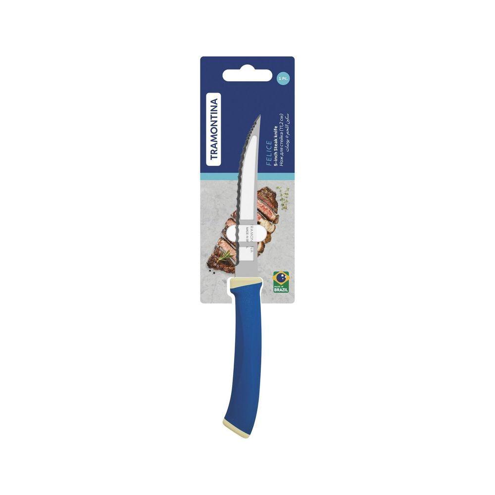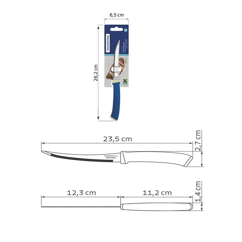 Faca Para Churrasco Tramontina Felice Aço Inox Fio Microsserrilhado Azul 5 Tramontina
