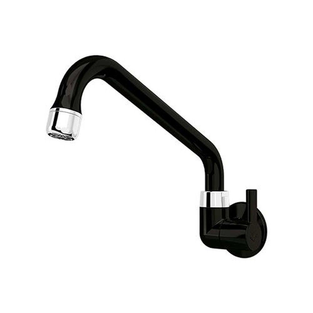 Torneira Cozinha Parede Bica Baixa Preta - Blukit 1/2 Com Redutor De Vazão
