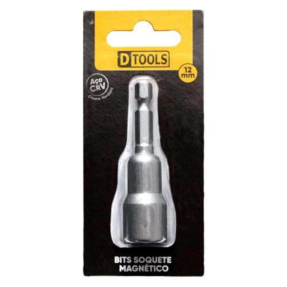 Bits Soquete Magnético 12mm Cromo Vanádio - Dtools 65mm Para Parafusadeiras - Encaixe Sextavado 1/4