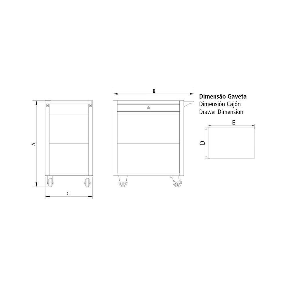 Carro Para Ferramentas Aberto 1 Gaveta Tramontina Pro Laranja Profissional TramontinaCarro para Ferramentas Aberto 1 Gaveta Tramontina PRO Laranja Profissional Tramontina -Carro para Ferramentas Aberto 1 Gaveta Tramontina PRO Laranja ProfissionalA linha de carros organizadores para ferramentas conta com modelos fechados, abertos e porta-cones. Os modelos possuem estrutura com paredes reforçadas, puxador ergonômico, rodas de borracha e sistema especial de travamento de gavetas, o que proporciona maior segurança, parado ou em movimento. Porque não basta ter a ferramenta certa, é preciso ter ela sempre à mão.Estrutura com paredes reforçadas.Gaveta com corrediça telescópica.Tranca para a gaveta, chave inclusa.Três bandejas.Rodas dianteiras fixas em borracha com 80 mm de diâmetro.Rodas traseiras giratórias em borracha com 80 mm de diâmetro.Capacidadede carga máxima da gaveta: 20 Kg.Capacidade estática: 200 Kg, Capacidade dinâmica: 100-150 KgEspessura das chapas: corpo, bandeja e gaveta: 0,9 mm.Puxador plástico.As maletas, carros e bancadas são testados em ensaios de carga, para garantir sua resistência durante a utilização na oficina ou indústria.A pintura eletrostática forma uma película protetiva que garante um acabamento excelente e resistência à corrosão.As gavetas que estão na linha de carros e bancadas, possuem corrediça tipo telescópica. As corrediças telescópicas garantem deslizamento suave e maior abertura para as gavetas, quando comparadas com corrediças tradicionais.Armazenamento e transporte de ferramentas manuais, peças e acessórios.As ferramentas são produzidas e testadas conforme normas específicas.Cuidados com o produto Use óculos, luvas e outros equipamentos de proteção individual (EPIs) de acordo com a tarefa a ser executada. Lubrifique as guias telescópicas das gavetas regularmente, para manter seu bom funcionamento.Mantenha as gavetas e portas dos carrinhos e caixas trancadas durante sua movimentação ou transporte.Não coloque peças muito altas sobre carrinhos, pois elas caem facilmente durante sua movimentação. Mantenha o chão do local de trabalho limpo, evitando que as rodas dos carrinhos batam ou passem sobre obstáculo, causando a queda de algo que está sobre o carrinho, ou do próprio. Não sobrecarregue as gavetas dos carrinhos ou caixas com peso excessivo. Armazene em local limpo e seco.GarantiaGarantia total contra vícios ou defeitos de fabricação. - -Características Gerais do Produto:Garantia: - 3 Meses
