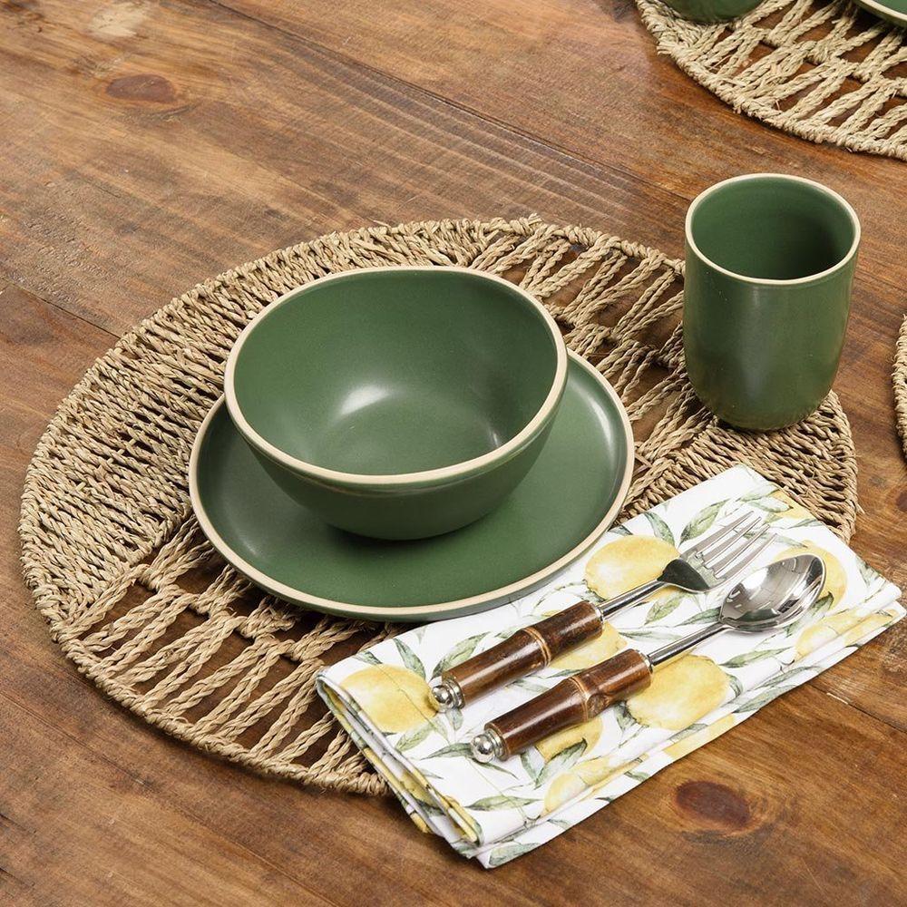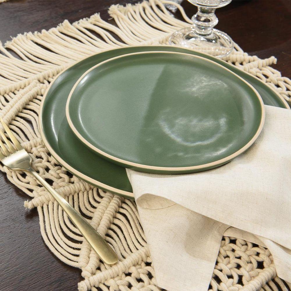 Jogo Copa E Cia 8 Peças Vivant Em Cerâmica VerdeJogo Copa e Cia 8 Peças Vivant em Cerâmica Verde -Características Gerais do Produto: - Composição: 100% Cerâmica. - Detalhes: Cerâmica com Efeito Mate (Fosco).; Design Exclusivo Copa&Cia.; As cores podem sofrer pequenas alterações de cor, variando de monitor para monitor.; Os objetos que ambientam as fotos não acompanham o produto.; As fotos produzidas são apenas como sugestão de uso com as demais peças da coleção.; Produzido na Tunísia - Cuidados: Lavar com Detergente Neutro e Esponja Macia.; Não Deixar de Molho.; Podem ser Colocados em Lava-Louças e Micro-Ondas.; Não utilizar solventes, abrasivos ou alvejantes. - Dimensões (cm): Prato Raso: 27cm Ø; Prato de Lanche: 20cm ØAcompanha o produto: - 4 Pratos Rasos4 Pratos de Sobremesa Garantia: - Sem Garantia
