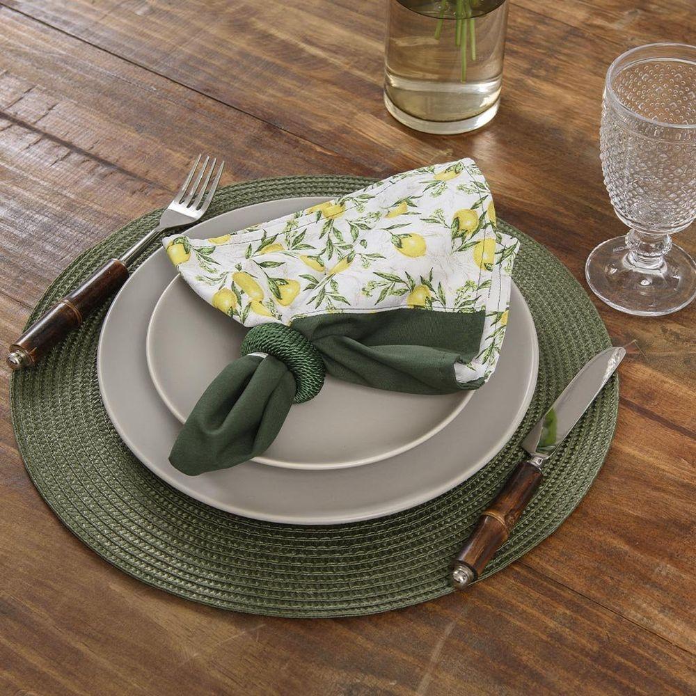 Jogo Americano Copa E Cia 6 Peças Luna OliveJogo Americano Copa e Cia 6 Peças Luna Olive -Características Gerais do Produto: - Composição: 75% Polipropileno (Plástico) e 25 % Poliéster. - Detalhes: Flexível.; Kit Contém 06 peças.; São práticas e versáteis - Cuidados: Evitar contato com objetos cortantes ou superaquecidos.; Não amassar; Não torcer ou dobrar totalmente o produto.; Não utilizar solventes, abrasivos ou alvejantes.; Limpar manualmente com pano úmido e detergente neutro. - Dimensões (cm): Diâmetro: 38 cmAcompanha o produto: - 6 Peças de Jogo Americano Garantia: - Sem Garantia