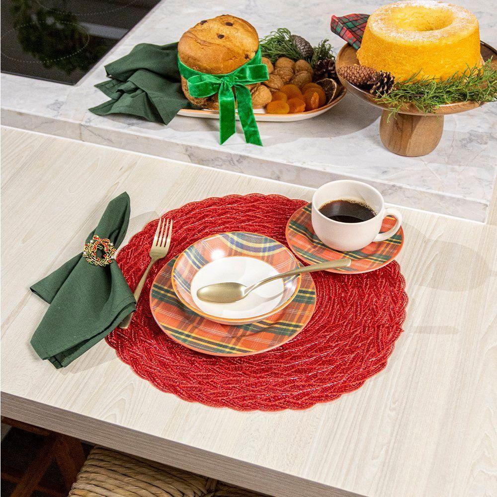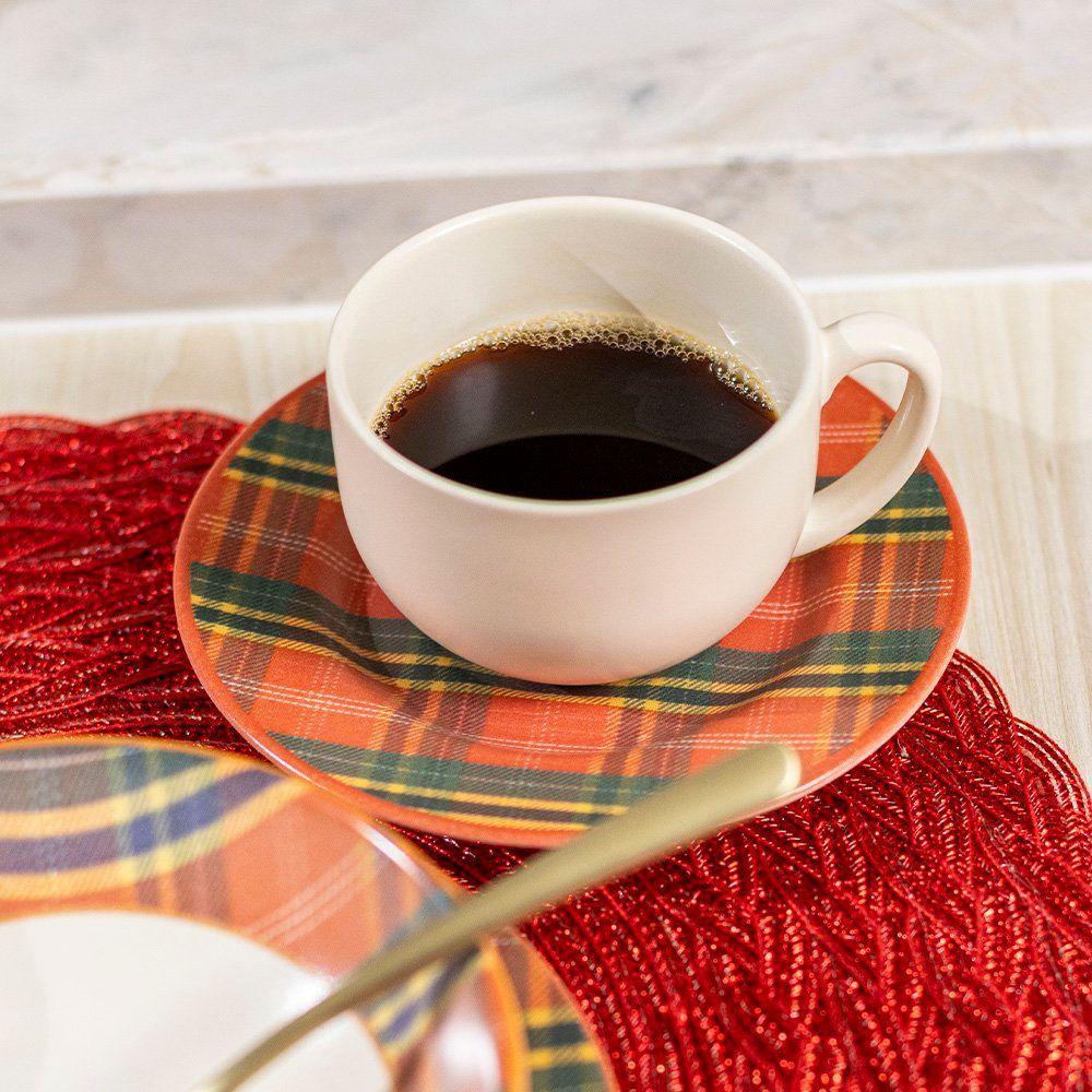 Xícara Com Pires Copa E Cia Aquarelle Natal Em Cerâmica Xadrez