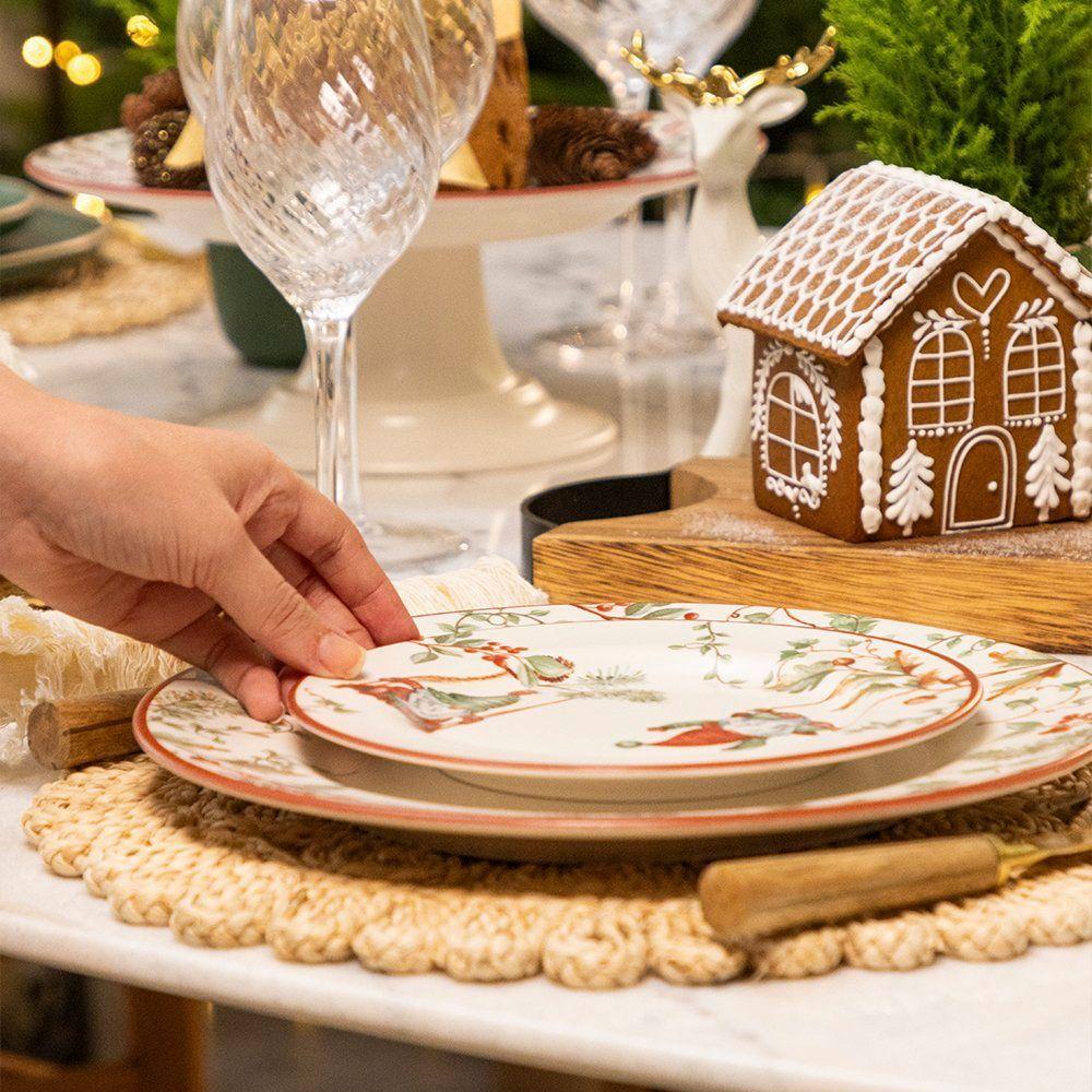 Prato Raso Copa E Cia Aquarelle Natal Em Cerâmica Gnomos