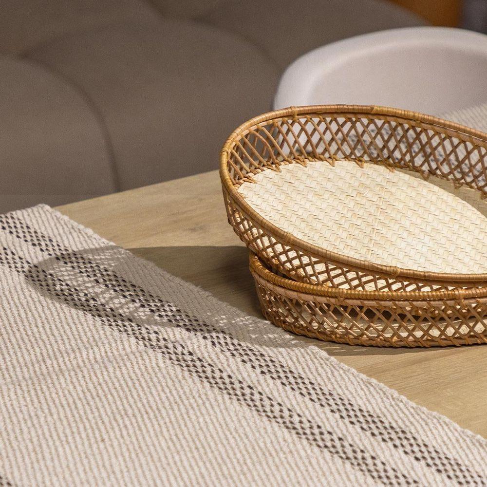 Caminho De Mesa Copa E Cia KochiCaminho de Mesa Copa e Cia Kochi -Características Gerais do Produto: - Composição: Algodão; Juta - Detalhes: Design Exclusivo Copa&Cia.; Franjas nas Bordas.; Produzido na Índia.; As cores podem sofrer pequenas alterações de cor, variando de monitor para monitor.; Os objetos que ambientam as fotos não acompanham o produto.; As fotos produzidas são apenas como sugestão de uso com as demais peças da coleção.; Por ser uma peça com fibras naturais, pode ocorrer pequenas variações de tonalidade. - Cuidados: Não Deixar de Molho.; Não recomendado limpar a seco.; Armazenar em local seco e arejado.; Não Passar; Evitar contato com objetos cortantes ou superaquecidos.; Não molhar; Não torcer ou dobrar totalmente o produto.; Não utilizar solventes, abrasivos ou alvejantes.; Limpar manualmente com pano úmido e detergente neutro.; Não secar ao sol. - Dimensões (cm): Largura: 45 cm; Comprimento: 170 cmAcompanha o produto: - 1 Peça de Caminho de Mesa Garantia: - 7 dias/30 dias contra defeito de fabricação