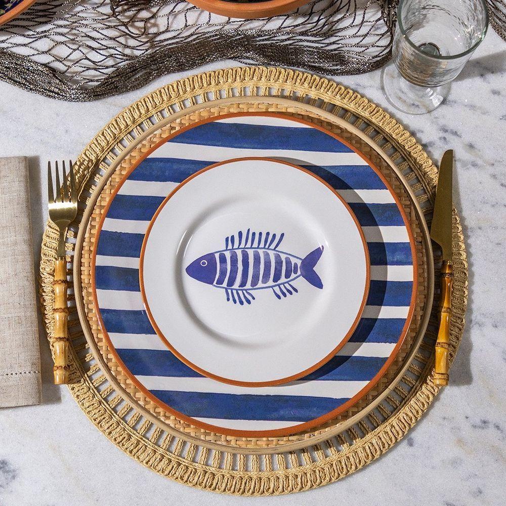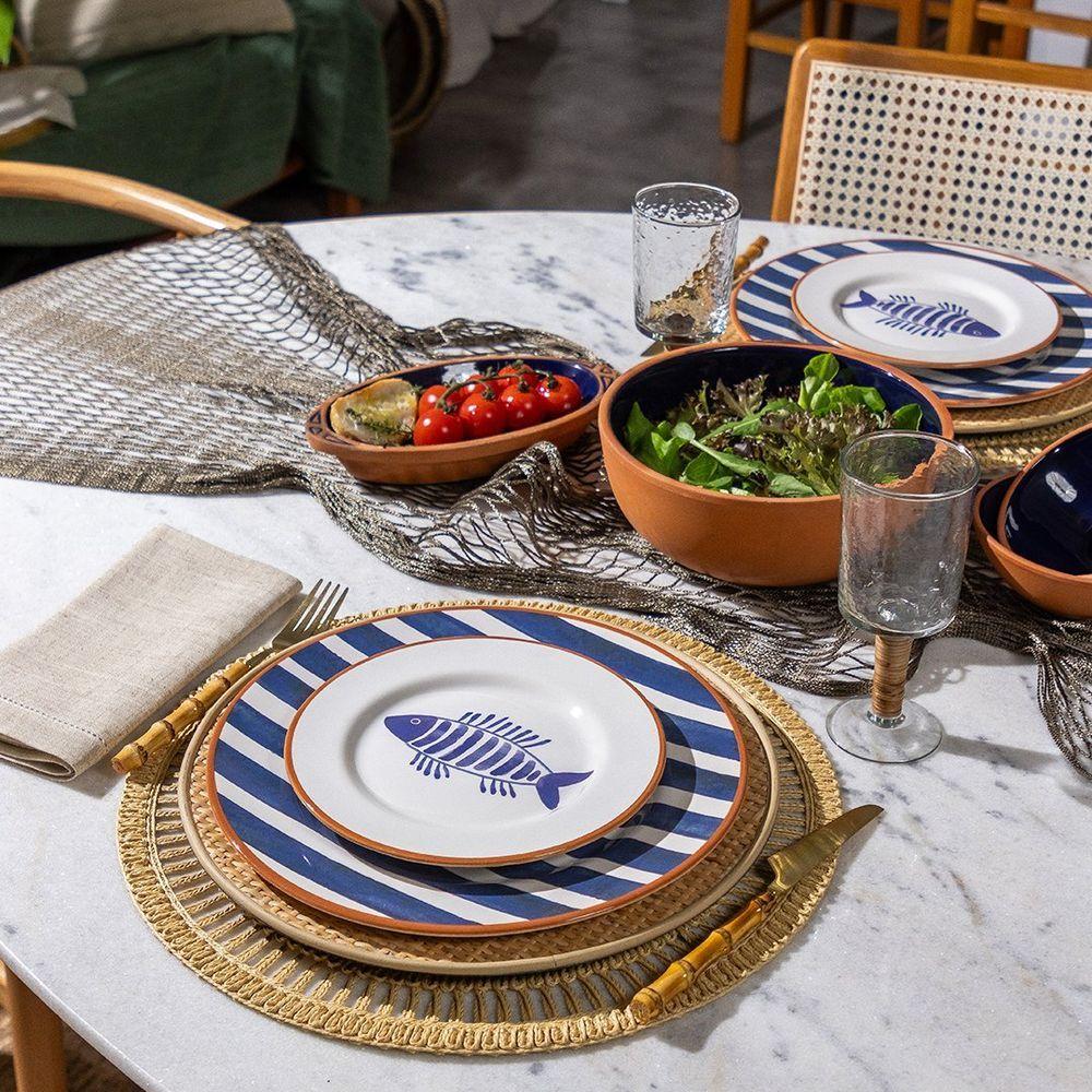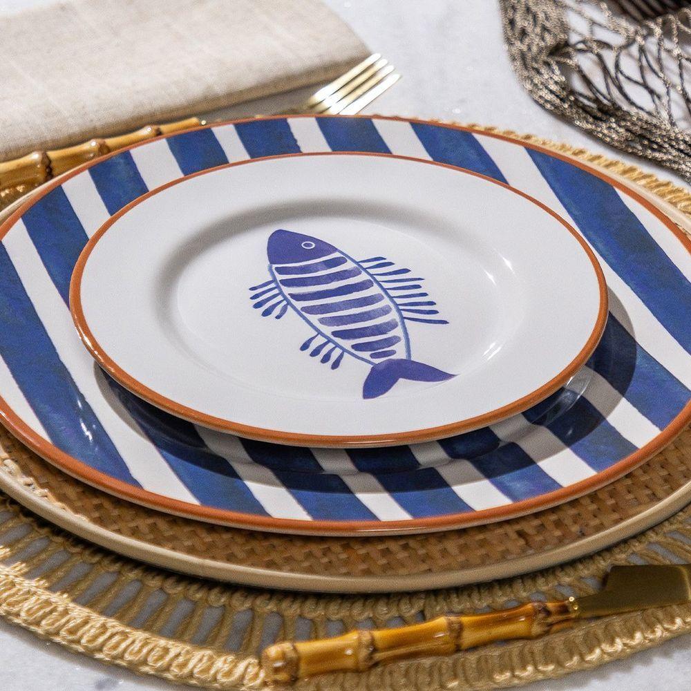 Prato De Sobremesa Copa E Cia Aquarelle Em Cerâmica Náutico Marinho