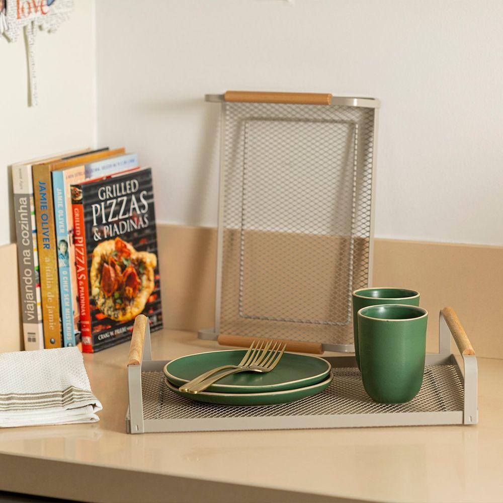 Bandeja Copa E Cia Rack Grande GeloBandeja Copa e Cia Rack Grande Gelo -Características Gerais do Produto: - Composição: Madeira; Ferro - Detalhes: Peça Vendida de Forma Individual.; Design Exclusivo Copa&Cia.; As cores podem sofrer pequenas alterações de cor, variando de monitor para monitor.; Os objetos que ambientam as fotos não acompanham o produto.; As fotos produzidas são apenas como sugestão de uso com as demais peças da coleção. - Cuidados: Armazenar em local seco e arejado.; Não podem ser colocados em lava-louças.; Evitar contato com objetos cortantes ou superaquecidos.; Não utilizar solventes, abrasivos ou alvejantes.; Limpar manualmente com pano úmido e detergente neutro. - Dimensões (cm): Grande: 40 x 30,7cmAcompanha o produto: - 1 Peça de Bandeja Garantia: - 7 dias/30 dias contra defeito de fabricação