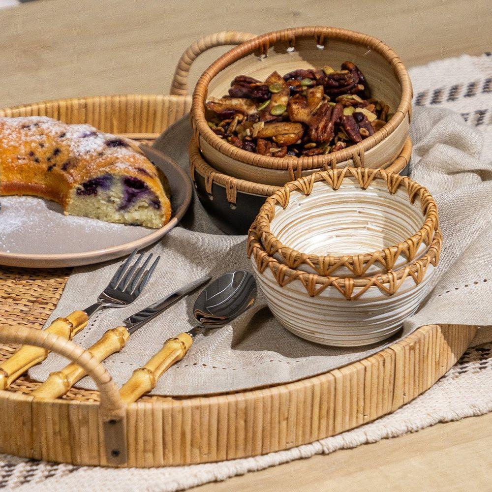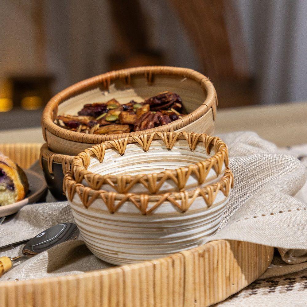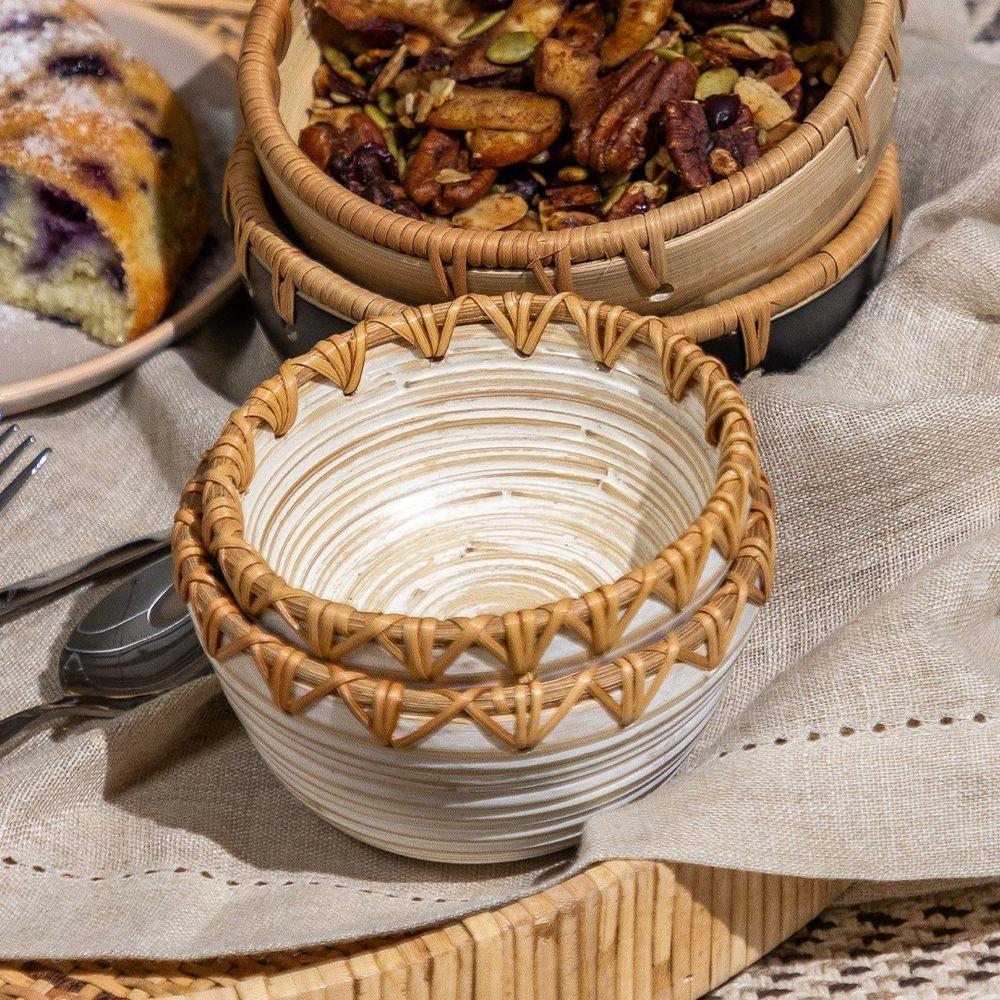 Bowl Copa E Cia Rattan Capri PequenoBowl Copa e Cia Rattan Capri Pequeno -Características Gerais do Produto: - Composição: Rattan - Detalhes: Peça Vendida de Forma Individual.; Design Exclusivo Copa&Cia.; As cores podem sofrer pequenas alterações de cor, variando de monitor para monitor.; Os objetos que ambientam as fotos não acompanham o produto.; As fotos produzidas são apenas como sugestão de uso com as demais peças da coleção.; Por ser uma peça com fibras naturais, pode ocorrer pequenas variações de tonalidade. - Cuidados: Não Deixar de Molho.; Armazenar em local seco e arejado.; Não molhar; Não utilizar solventes, abrasivos ou alvejantes.; Limpar manualmente com pano úmido e detergente neutro.; Não secar ao sol. - Dimensões (cm): Pequeno: 11 cm Ø /Altura: 6,5 cm; Médio: : 12 cm Ø/ Altura: 6,5 cmAcompanha o produto: - 1 Peça de Bowl Garantia: - 7 dias/30 dias contra defeito de fabricação