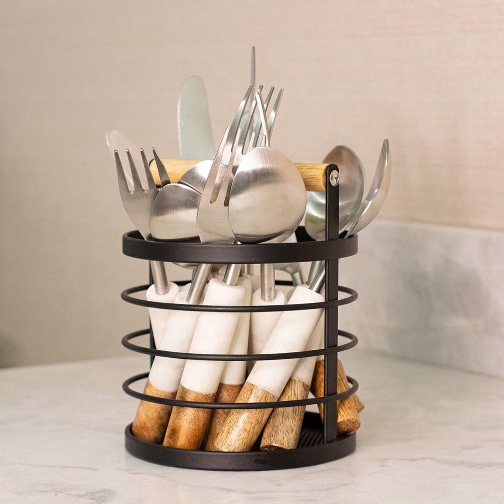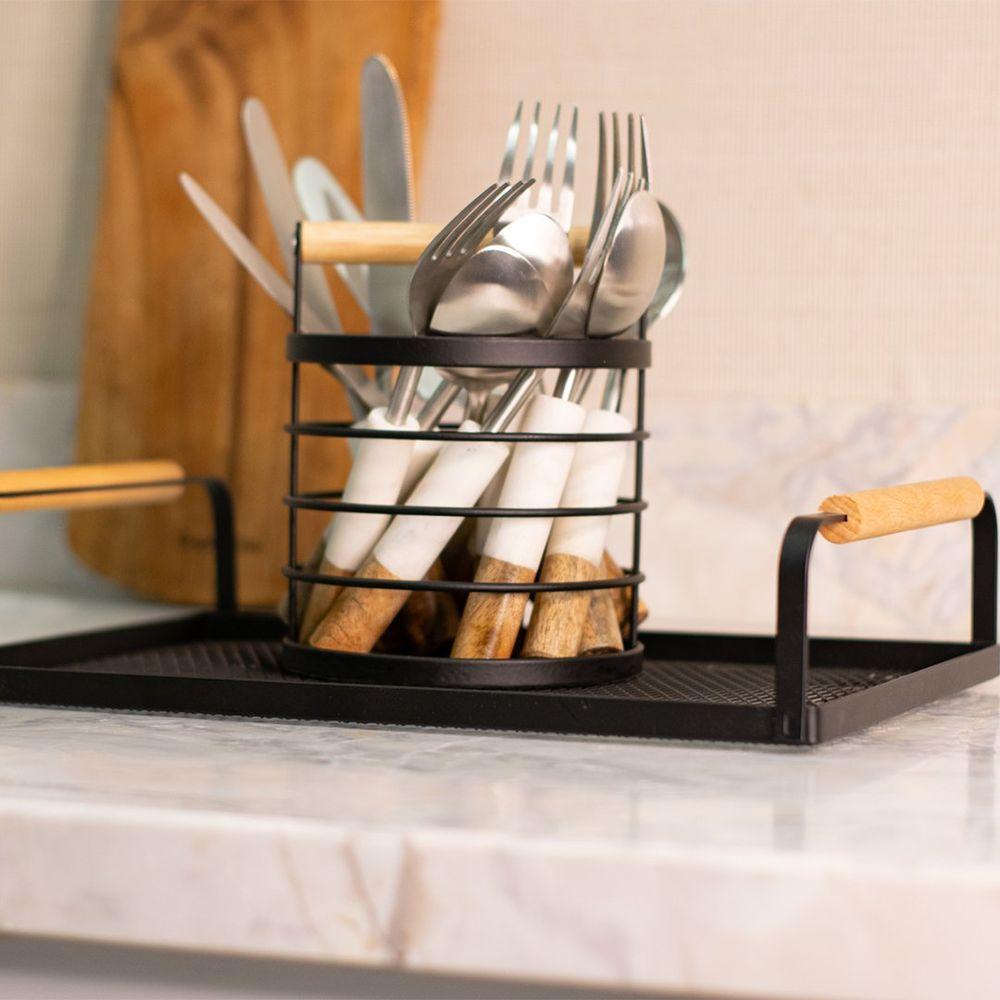 Porta Talheres Copa Ecia Rack Redondo Preto