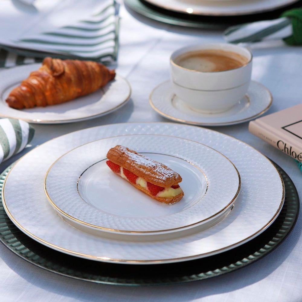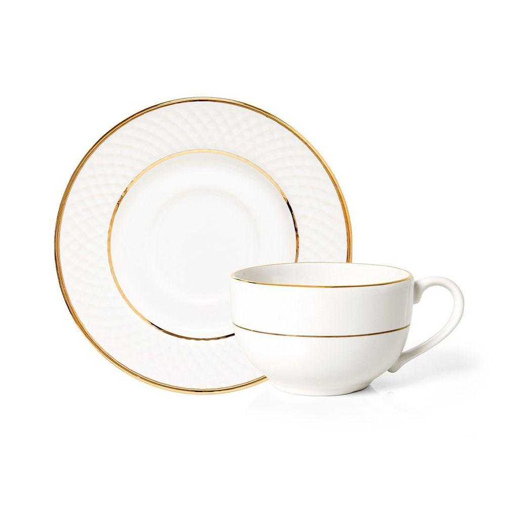 Xícara Com Pires Copa E Cia Aquarelle Em Cerâmica Filetado Diamonds Ouro