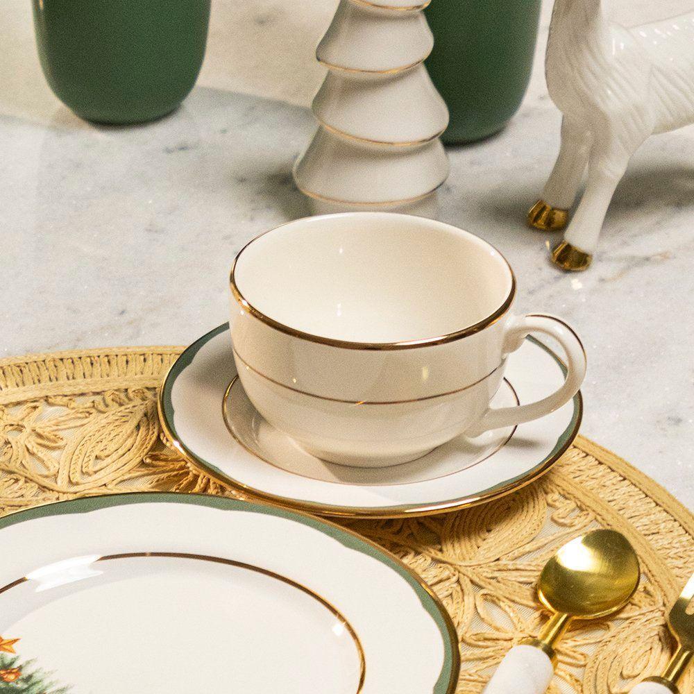 Xícara Com Pires Copa E Cia Aquarelle Em Cerâmica Filetado Ouro Olive