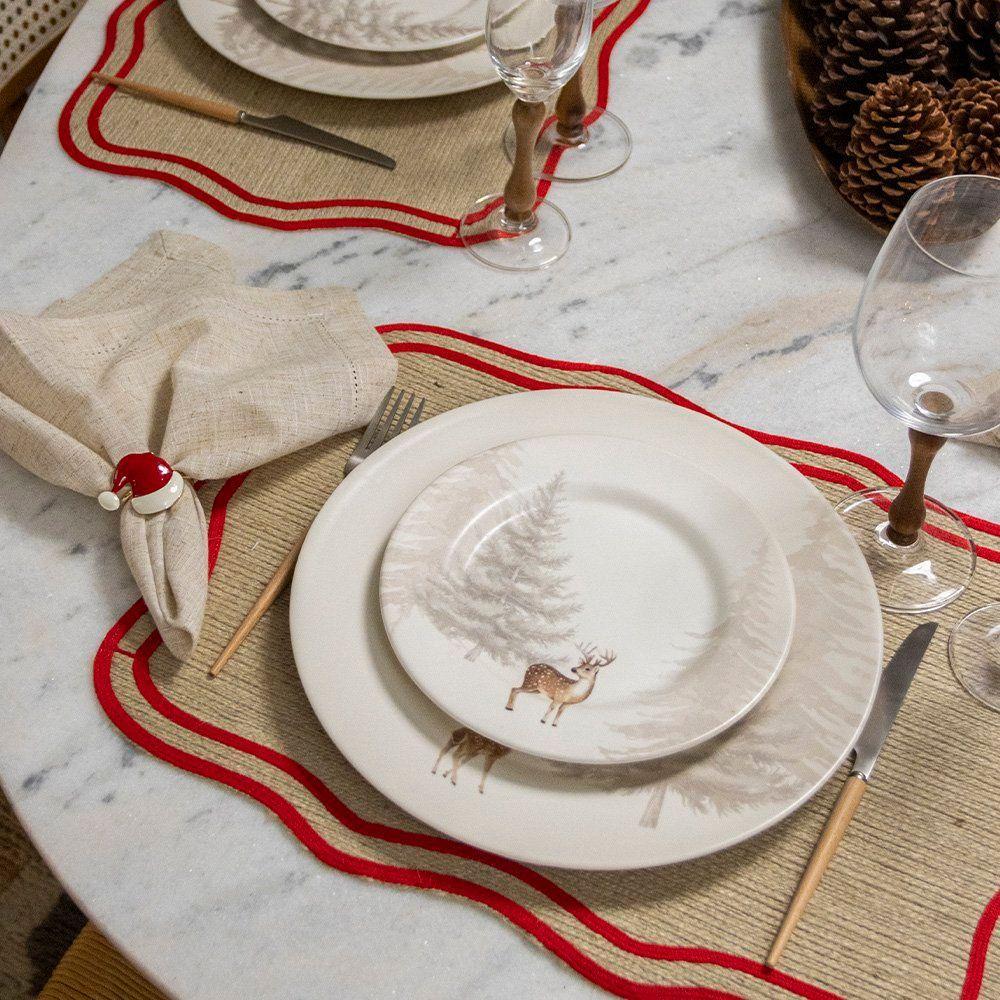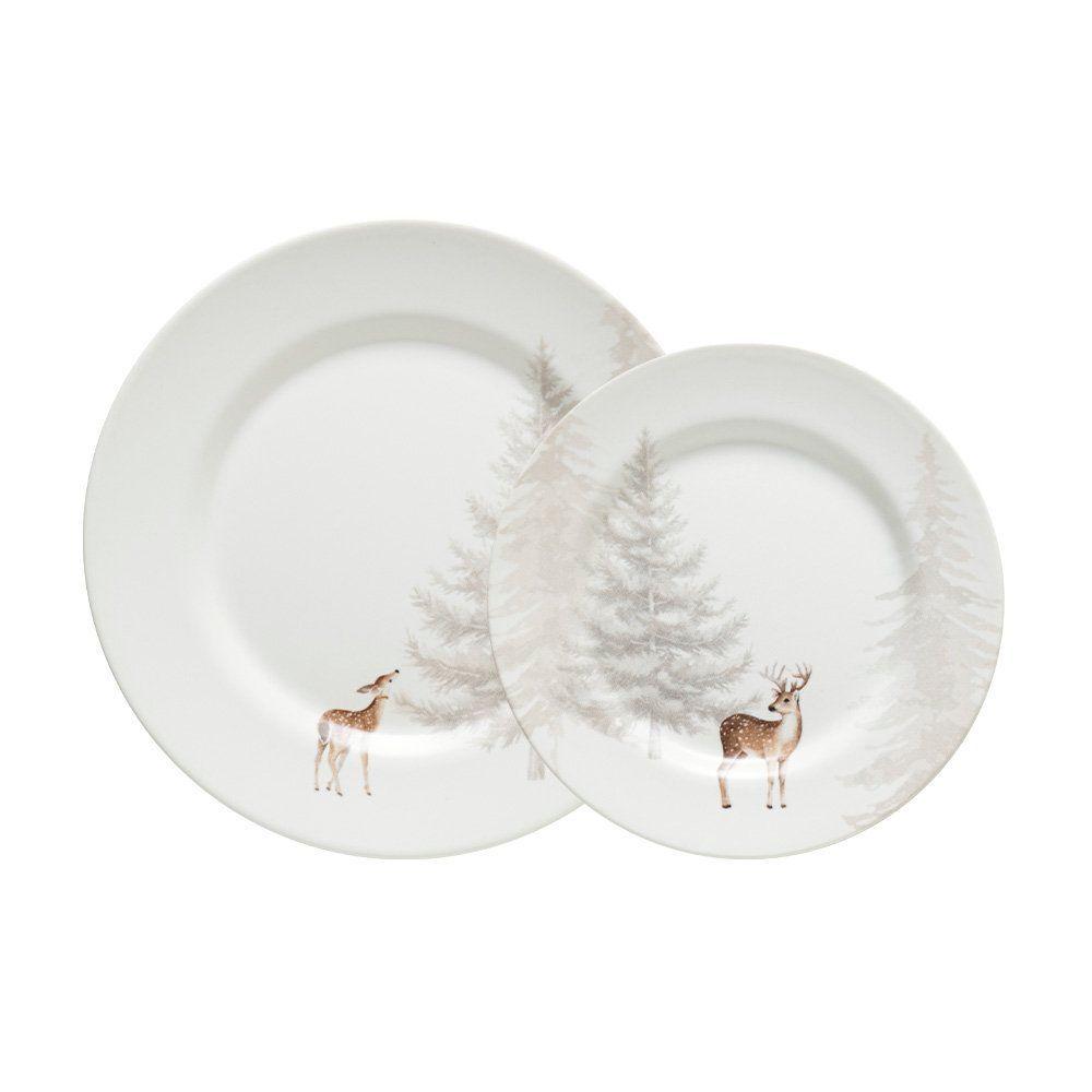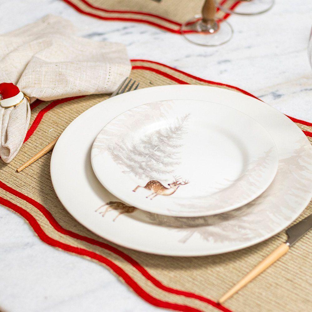 Jogo Copa E Cia 12 Peças Aquarelle Natal Em Cerâmica Rena Bosque