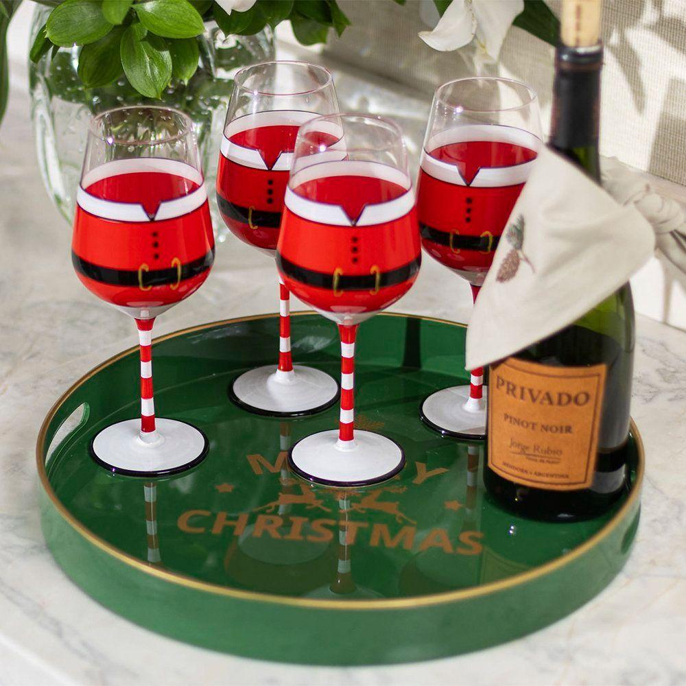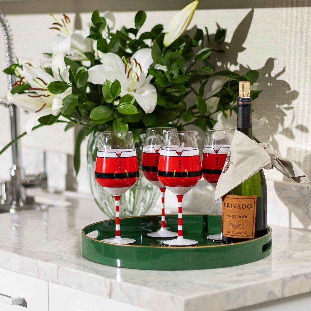 Taça Copa E Cia 4 Peças Christmas 510ml Em Vidro Gold