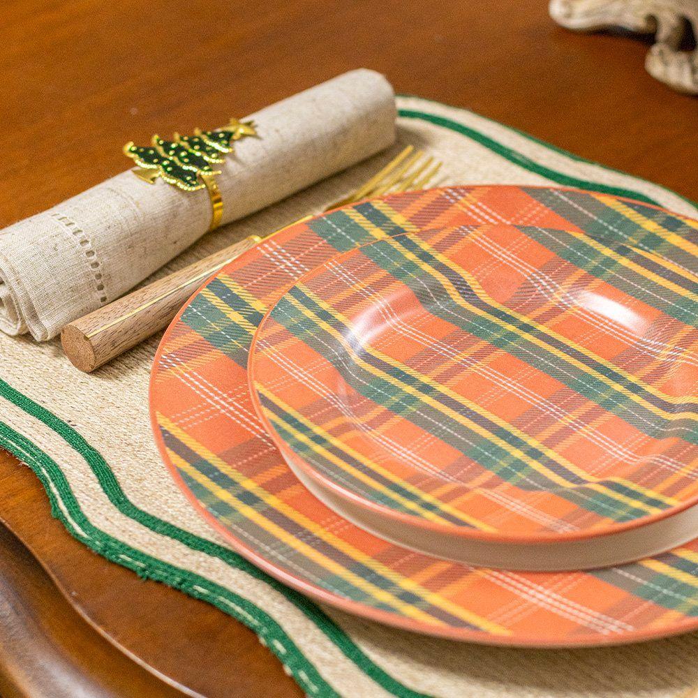 Jogo Copa E Cia 12 Peças Aquarelle Natal Em Cerâmica XadrezJogo Copa e Cia 12 Peças Aquarelle Natal em Cerâmica Xadrez -Características Gerais do Produto: - Composição: Cerâmica - Detalhes: Produto produzido no Brasil.; Design Exclusivo Copa&Cia.; Processo de Decoração Digital.; As cores podem sofrer pequenas alterações de cor, variando de monitor para monitor.; Os objetos que ambientam as fotos não acompanham o produto.; As fotos produzidas são apenas como sugestão de uso com as demais peças da coleção. - Cuidados: Lavar com Detergente Neutro e Esponja Macia.; Não Deixar de Molho.; Podem ser Colocados em Lava-Louças e Micro-Ondas.; Armazenar em local seco e arejado.; Não utilizar solventes, abrasivos ou alvejantes.; Não colocar diretamente no fogo; Evite choques-térmicos e impactos. - Dimensões (cm): Prato de Sobremesa: 21cm Ø; Prato Raso: 29 cm ØAcompanha o produto: - 6 Pratos Rasos6 Pratos de Sobremesa Garantia: - 7 dias/30 dias contra defeito de fabricação