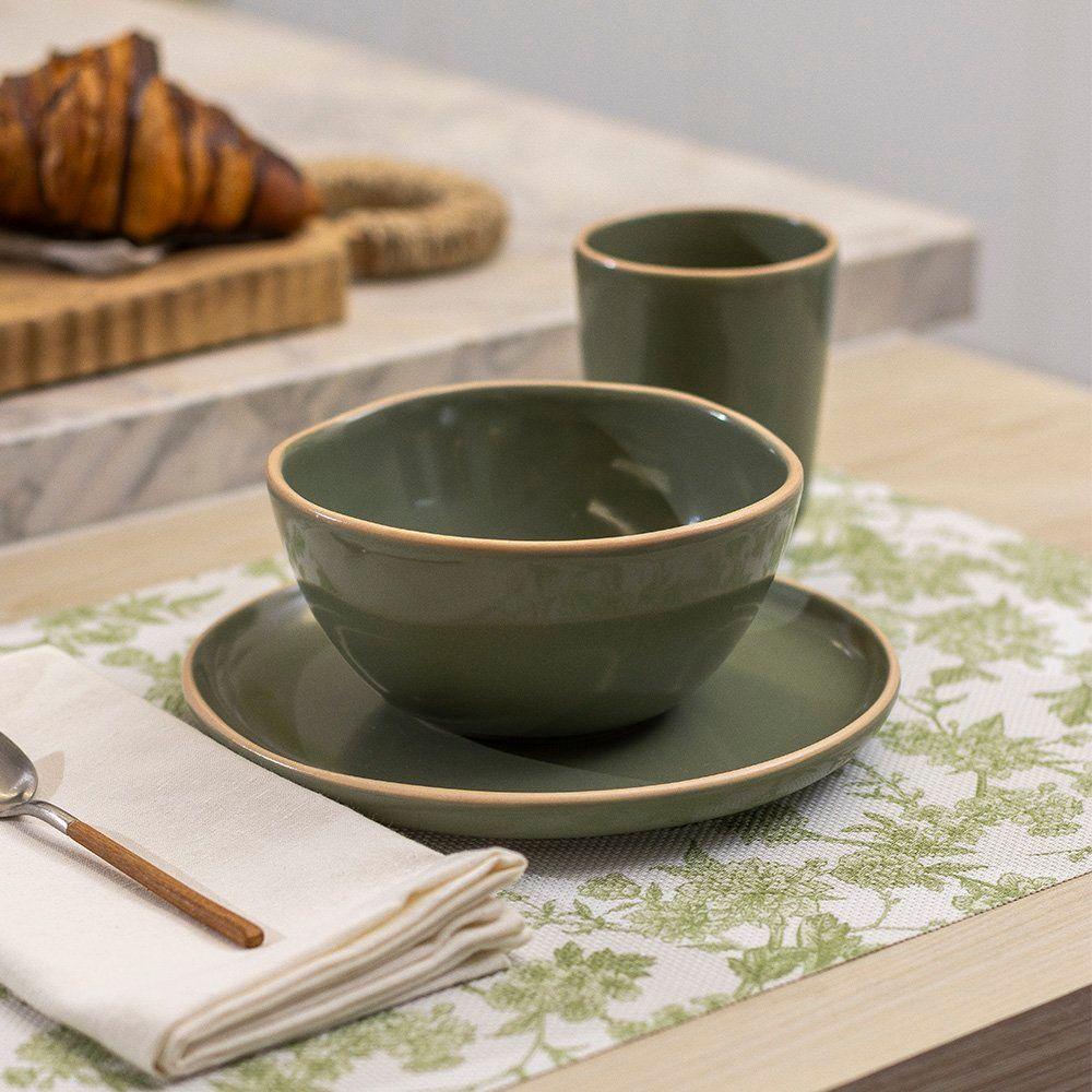 Jogo De Caneca Copa E Cia 2 Peças Vivant Em Cerâmica Sálvia