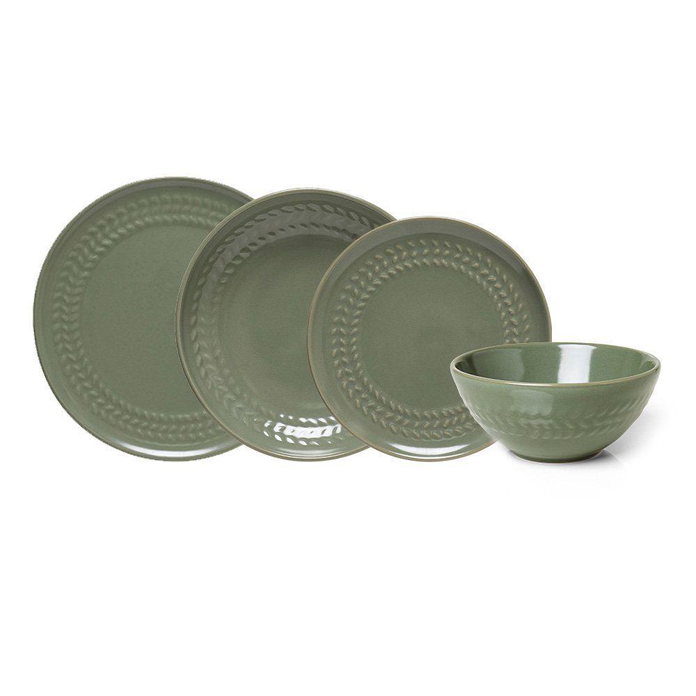 Jogo Copa E Cia 16 Peças Tramato Em Cerâmica Sálvia