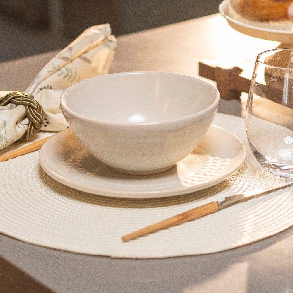 Jogo De Bowl Copa E Cia 6 Peças Tramato Em Cerâmica Ivory