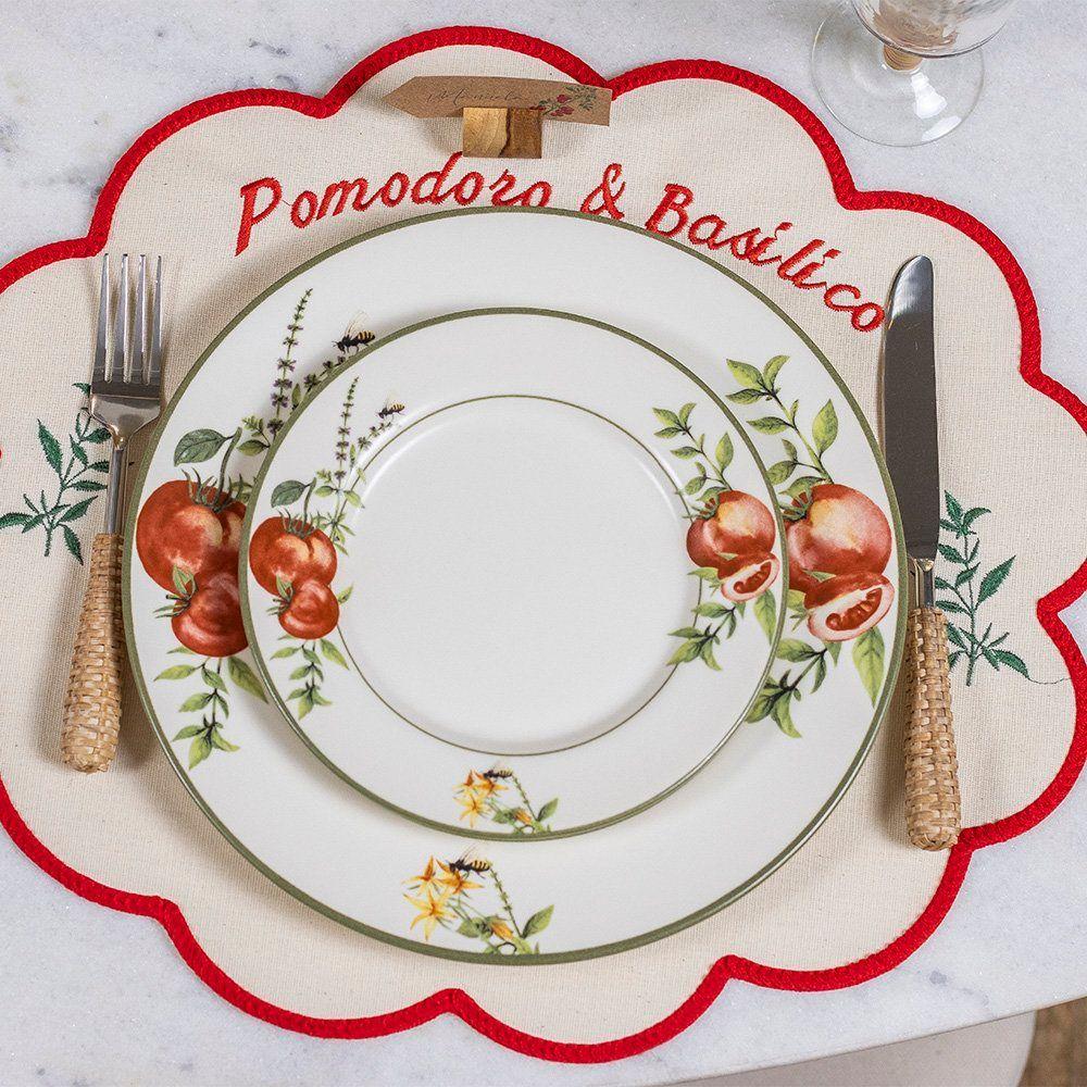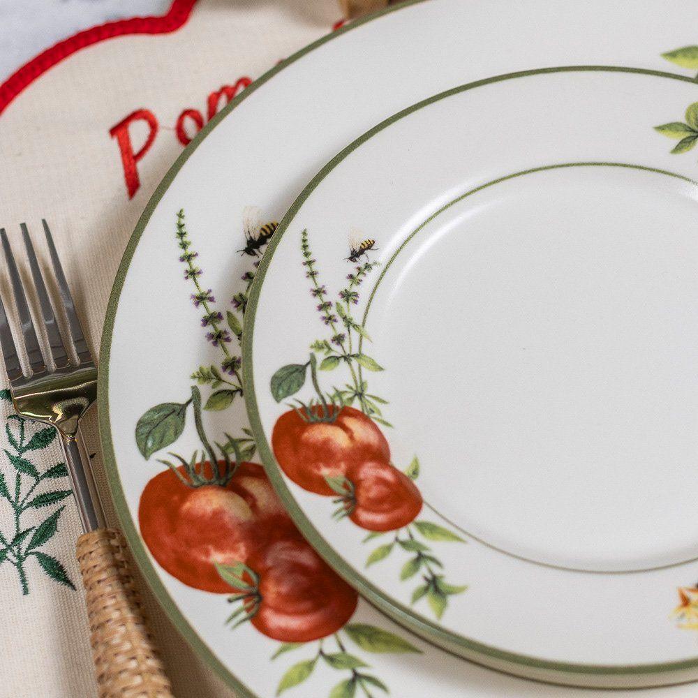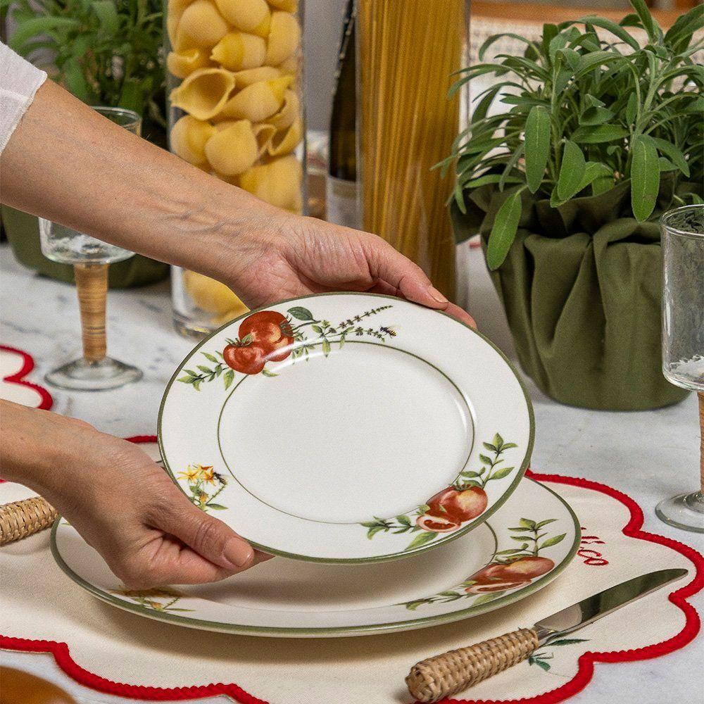 Prato De Sobremesa Copa E Cia Aquarelle Em Cerâmica Pomodoro E Basílico