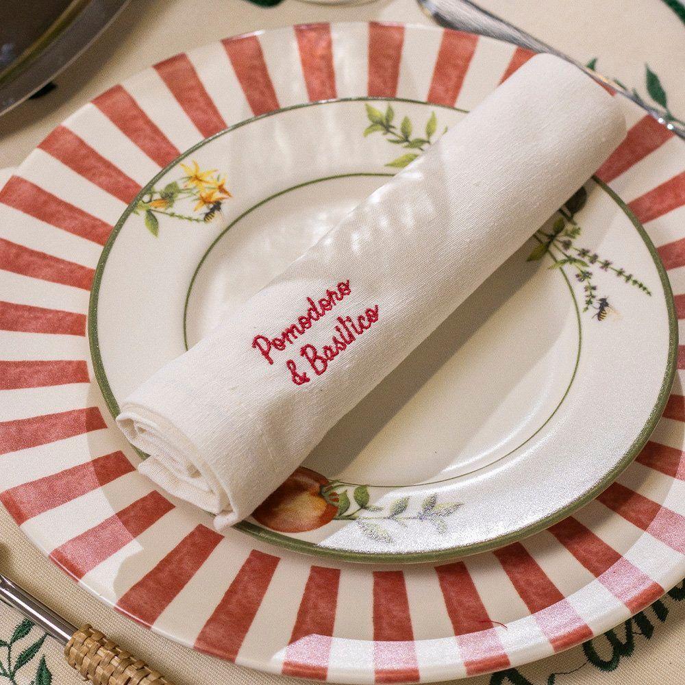 Prato Raso Copa E Cia Aquarelle Em Cerâmica Listras Vermelhas