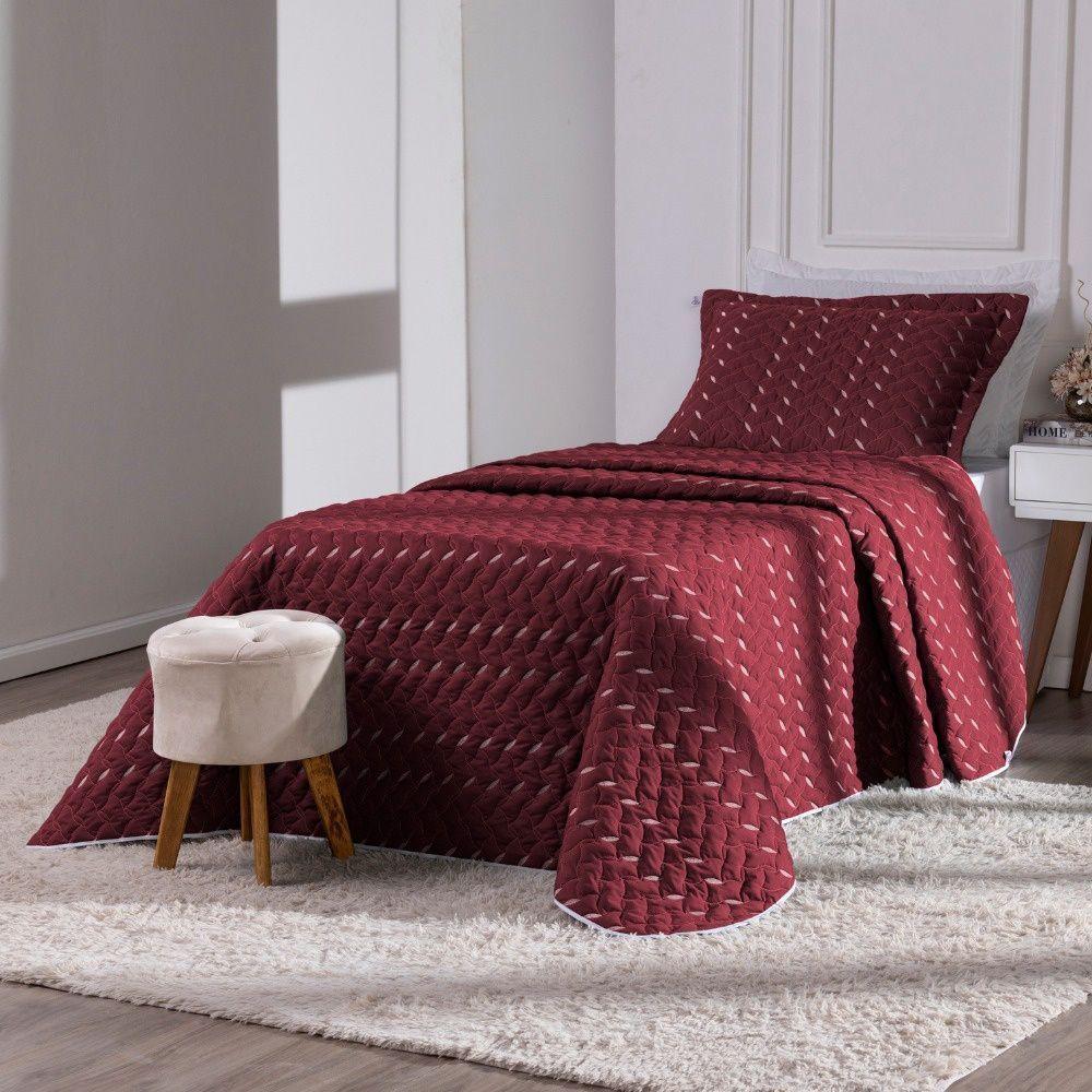 Cobre Leito Bordado 400 Fios Heitor Solteiro 100% Poliéster - VermelhoO cobre leito Heitor valoriza a decoração do quarto com seu bordado elegante e acabamento refinado em viés. Acompanha porta-travesseiro bordado com abas, que completa o conjunto com sofisticação. Confeccionado em hipercal 400 fios, oferece um toque excepcionalmente macio e agradável.Conteúdo da Embalagem e Medidas Aproximadas:01 Cobre Leito 1,80 x 2,40 m01 Porta Travesseiro 70 x 50 cm (medida útil)Composição:Tecido Superior: “Hipercal - 400 Fios” - 100% Poliéster (gramatura elevada)Forro: 100% PoliésterEnchimento: Manta - 100% PoliésterAtenção: As tonalidades das cores podem variar de acordo com as configurações do monitor e possíveis diferenças entre lotes de tecido.