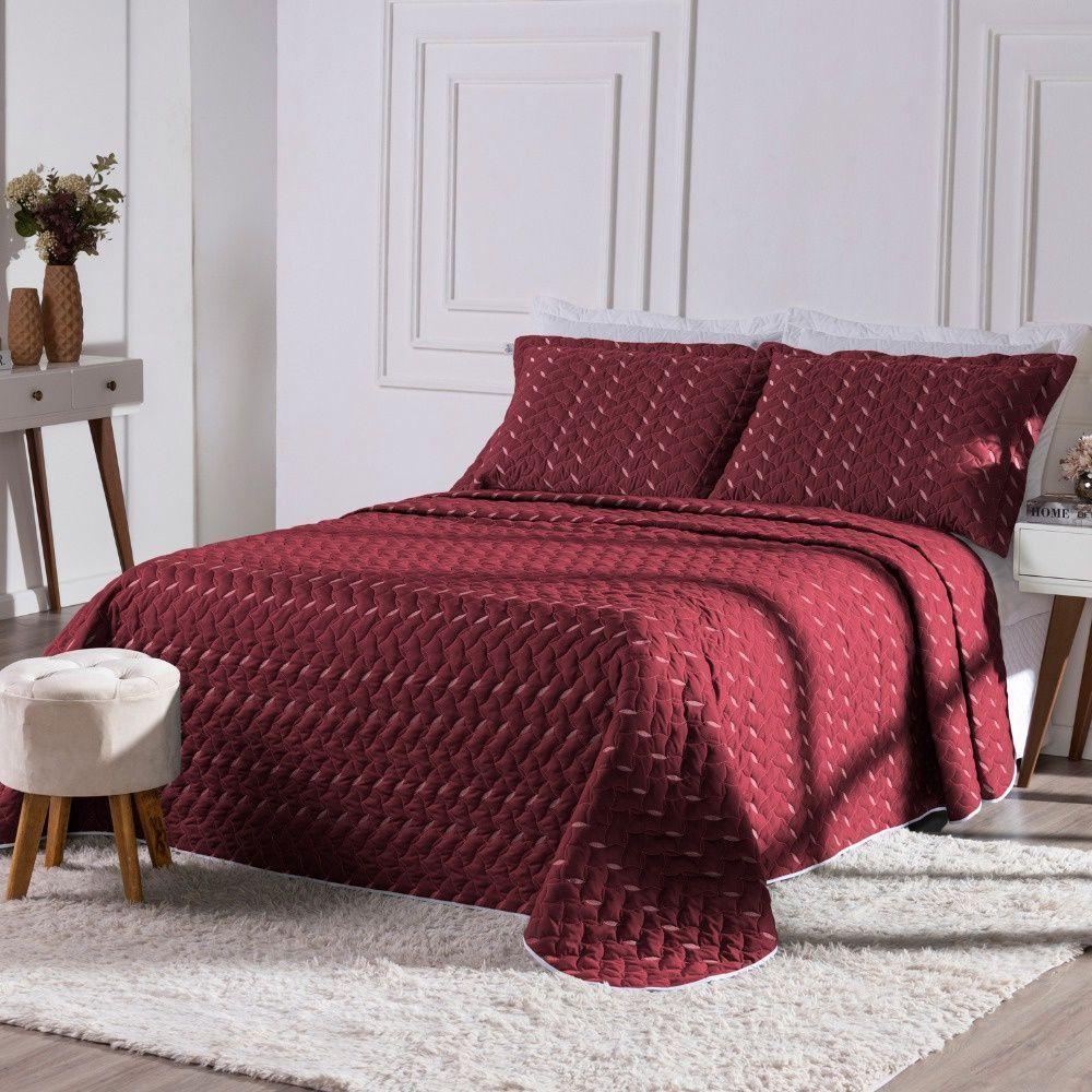 Cobre Leito Bordado 400 Fios Heitor Casal Queen 100% Poliéster - VermelhoO cobre leito Heitor valoriza a decoração do quarto com seu bordado elegante e acabamento refinado em viés. Acompanha porta-travesseiros bordados com abas, que completam o conjunto com sofisticação. Confeccionado em hipercal 400 fios, oferece um toque excepcionalmente macio e agradável.Conteúdo da Embalagem e Medidas Aproximadas:01 Cobre Leito 2,20 x 2,40 m02 Porta Travesseiros 70 x 50 cm (medida útil)Composição:Tecido Superior: “Hipercal - 400 Fios” - 100% Poliéster (gramatura elevada)Forro: 100% PoliésterEnchimento: Manta - 100% PoliésterAtenção: As tonalidades das cores podem variar de acordo com as configurações do monitor e possíveis diferenças entre lotes de tecido.