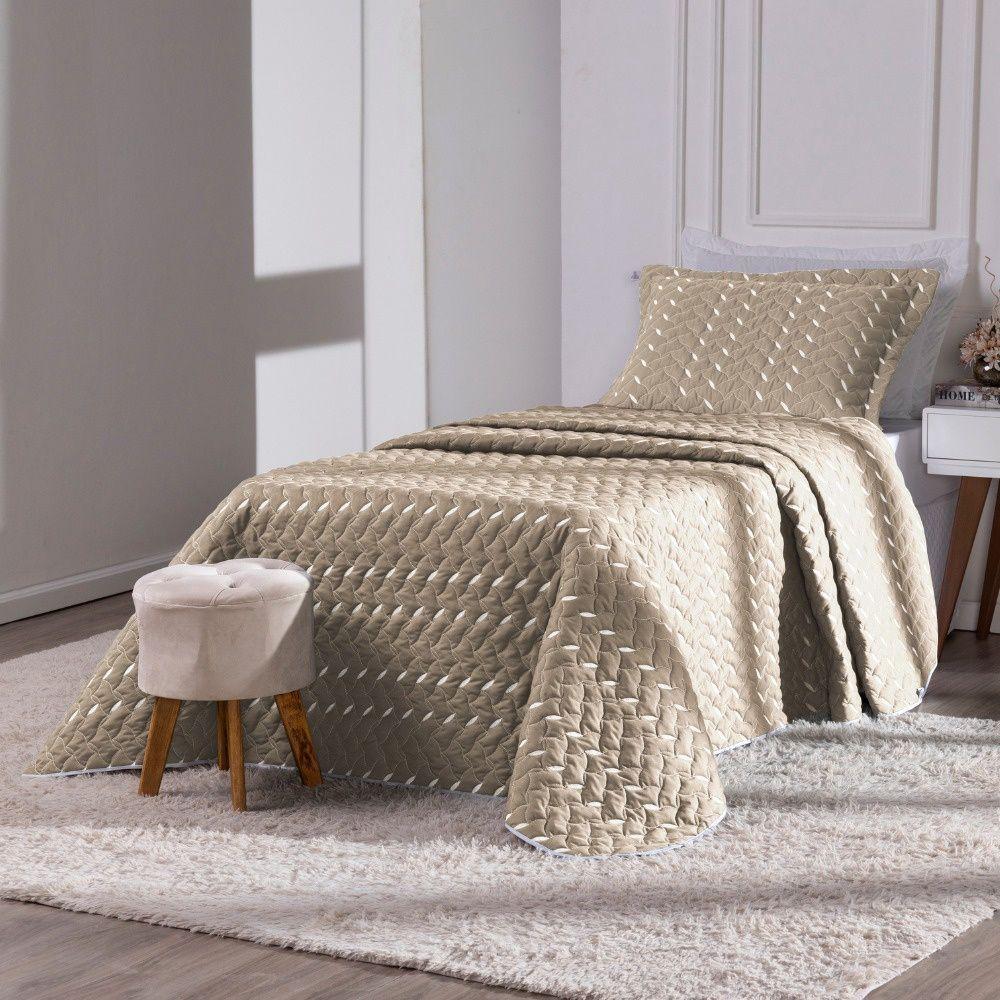 Cobre Leito Bordado 400 Fios Heitor Solteiro 100% Poliéster - Avelã