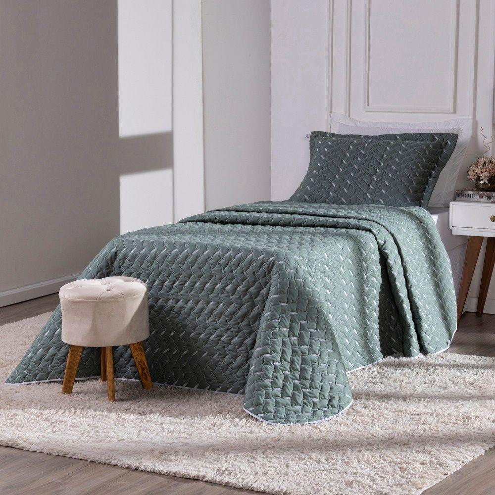 Cobre Leito Bordado 400 Fios Heitor Solteiro 100% Poliéster - Verde Militar
