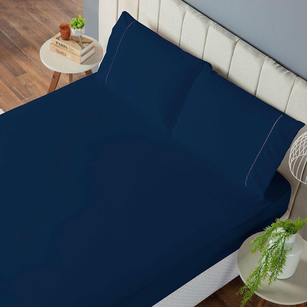Jogo De Lençol Casal King 3 Peças Laura 400 Fios 100% Poliéster - Azulmarinho