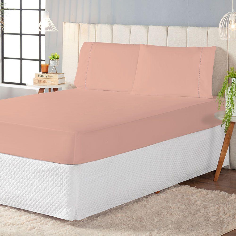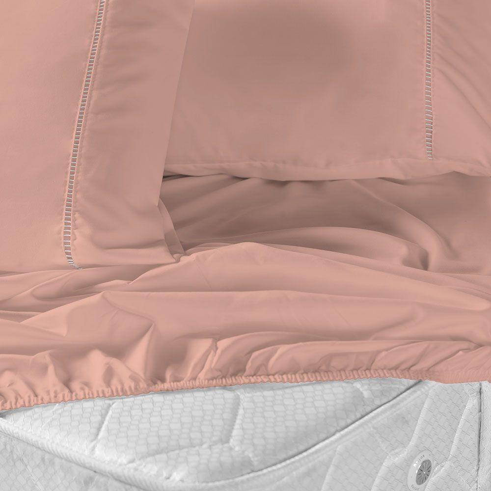 Jogo De Lençol Casal Padrão 3 Peças Laura 400 Fios 100% Poliéster - Rosê