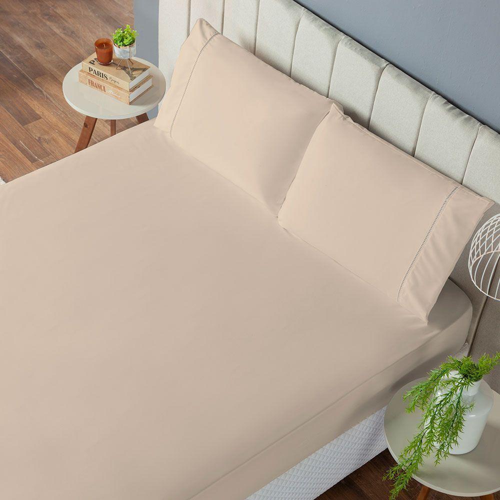 Jogo De Lençol Solteiro 2 Peças Laura 400 Fios 100% Poliéster - Cáqui