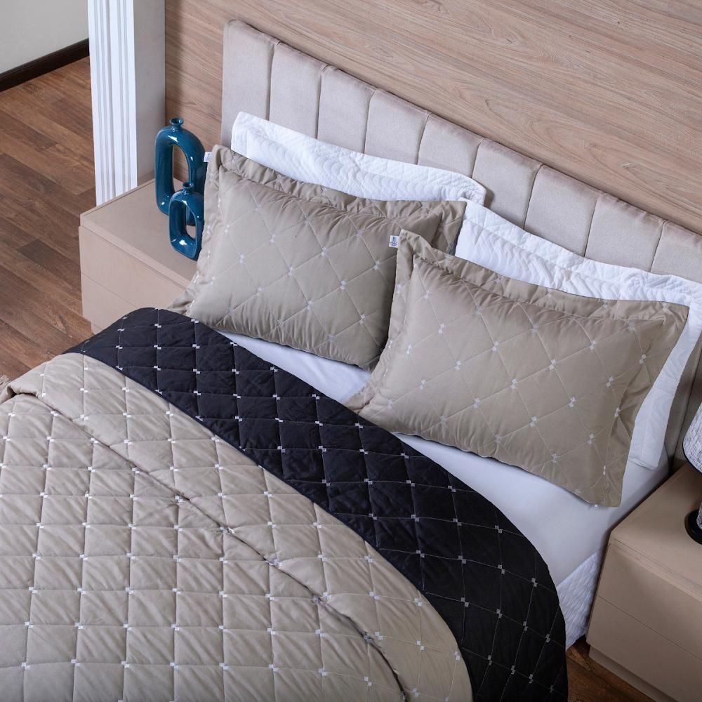 Kit Cobre Leito Dupla Face Casal King 3 Peças Bordado Essence Hipercal 400 Fios 100% Poliéster - Cáqui