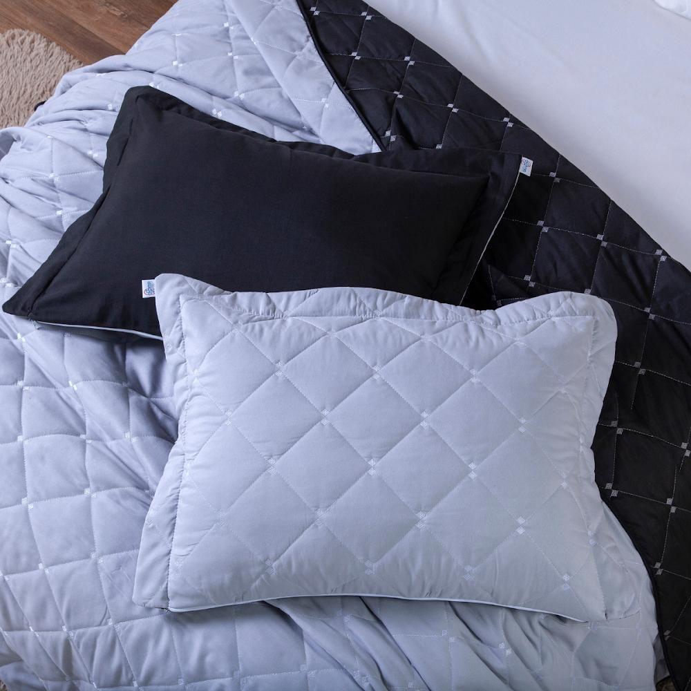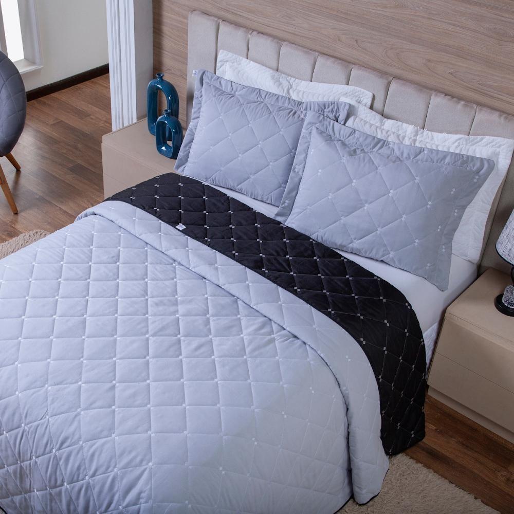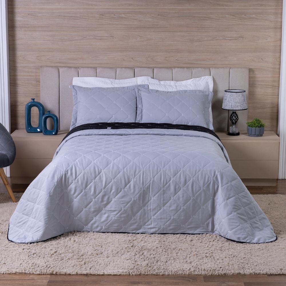Kit Cobre Leito Dupla Face Casal King 3 Peças Bordado Essence Hipercal 400 Fios 100% Poliéster - Cinza
