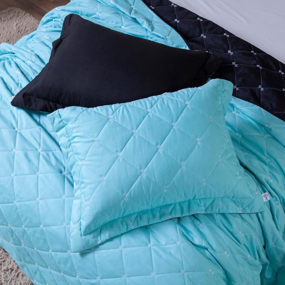 Kit Cobre Leito Dupla Face Casal King 3 Peças Bordado Essence Hipercal 400 Fios 100% Poliéster - Verde Tiffany